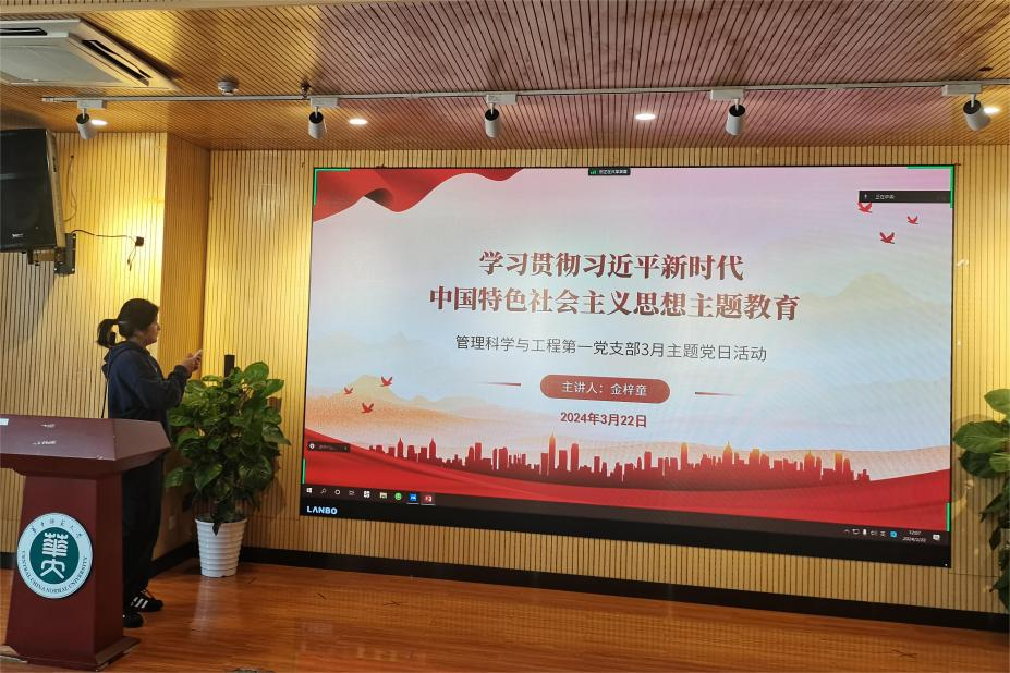 (通讯员 王凯扬 段雅芳)3月22日中午,信息管理学院硕士研究生管理科学与工程第一党支部于南湖综合楼N10001报告厅顺利开展了3月主题党日活动及党员民主评议活动。本次活动由党支部书记段雅芳同志主持,党支部全体党员同志参加。