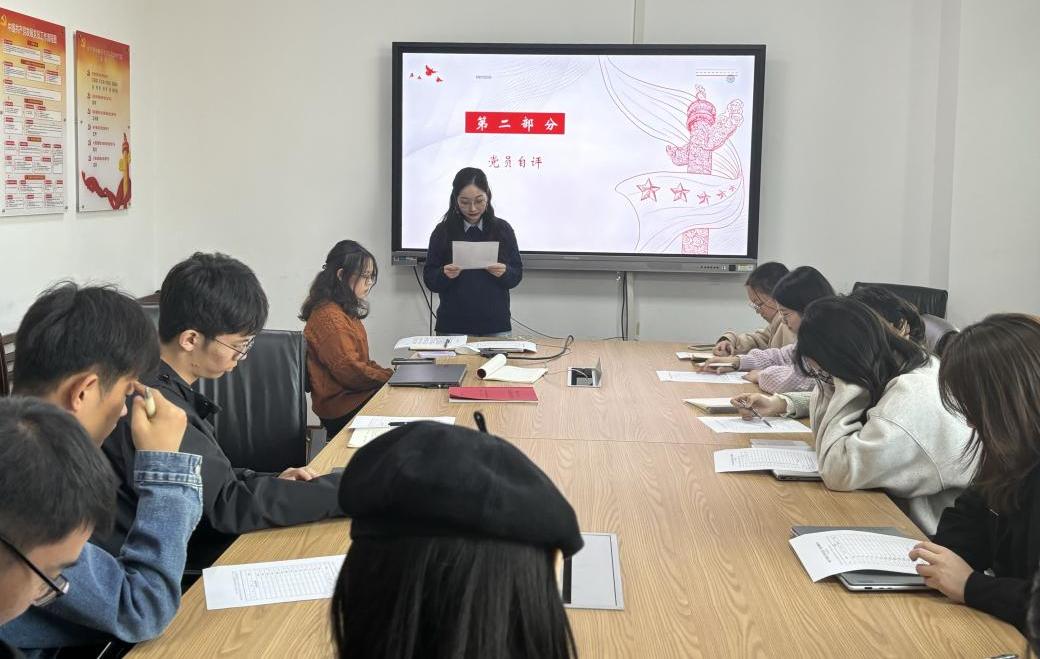 随后,党支部全体同志对照党员标准和评议内容进行自我评价。党支部成员结合自身实际,分别从思想、学习等方面汇报了自己的成长与不足,明确了自身下一步的改进方向。