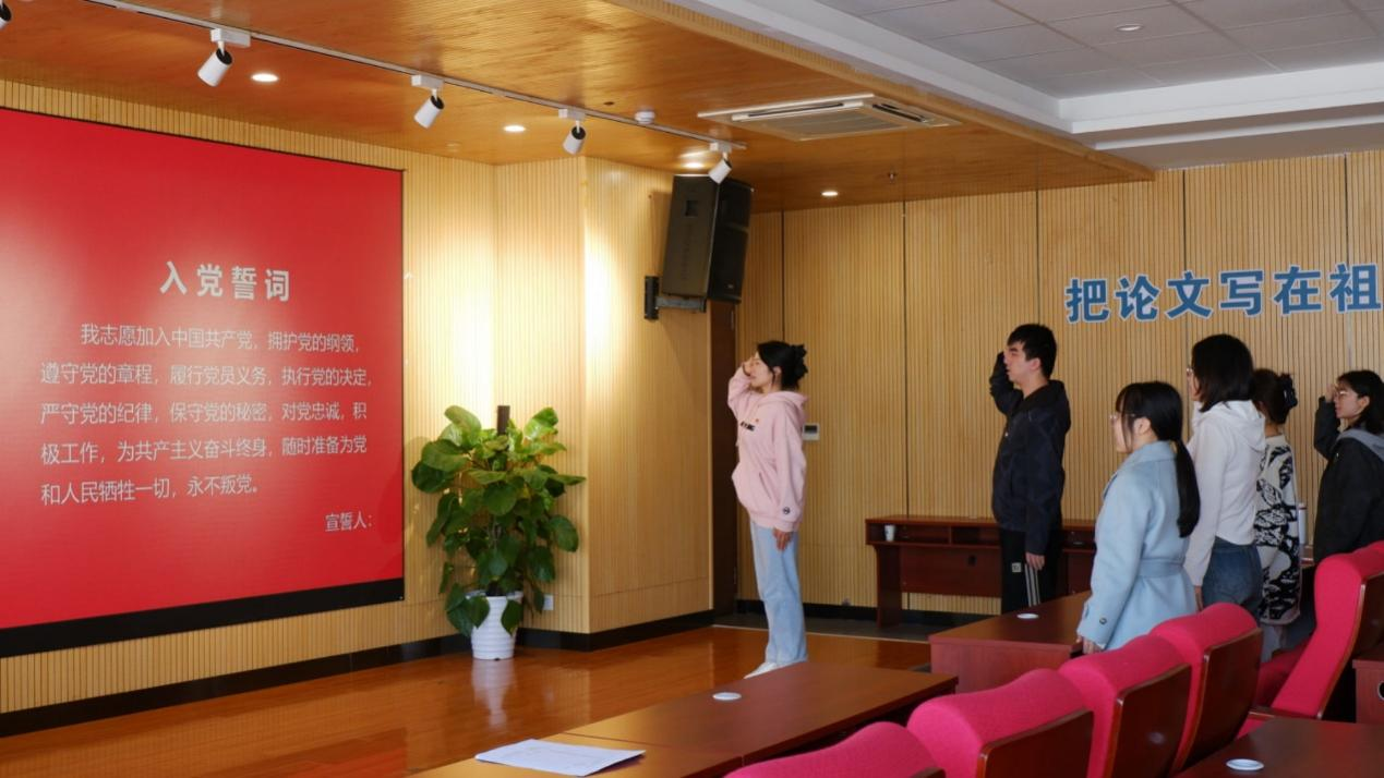 王慧婷同志带领全体党员同志重温入党誓词,全体同志佩戴党徽,紧握右拳,面向党旗集体宣誓:“我志愿加入中国共产党……随时准备为党和人民牺牲一切,永不叛党。”每名党员通过重温入党誓词回顾申请入党时的理想和初心,以自身的实际行动积极践行入党誓词,以饱满的精神发挥共产党员的先锋模范作用。现场气氛热烈,党员们声音洪亮,充分展现了他们坚定的信念和昂扬的斗志。