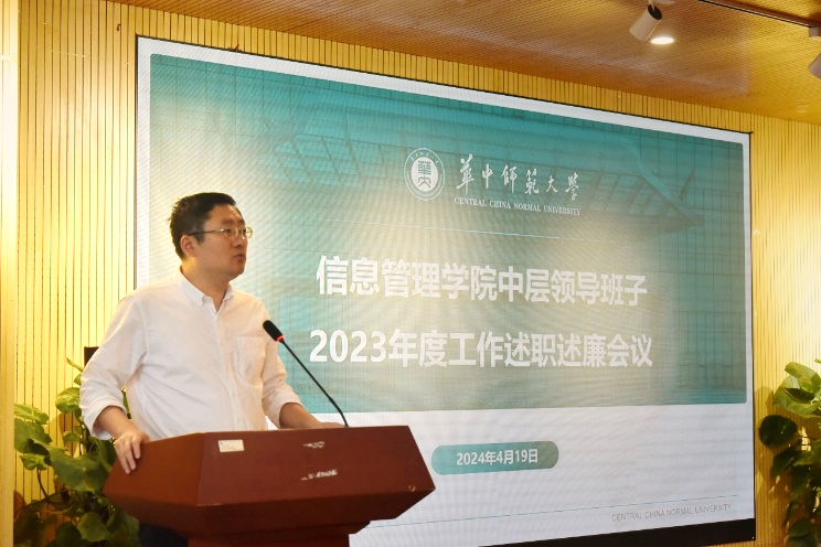 (通讯员 李淑敏 葛子钰 杨晶晶)根据《华中师范大学中层领导班子和领导干部考核实施办法(修订)》的有关精神,4月19日下午,信息管理学院于南湖综合楼10001报告厅召开2023年度中层领导班子工作述职述廉大会。学院全体教职工参会,信息管理学院党委书记王雨露主持会议。