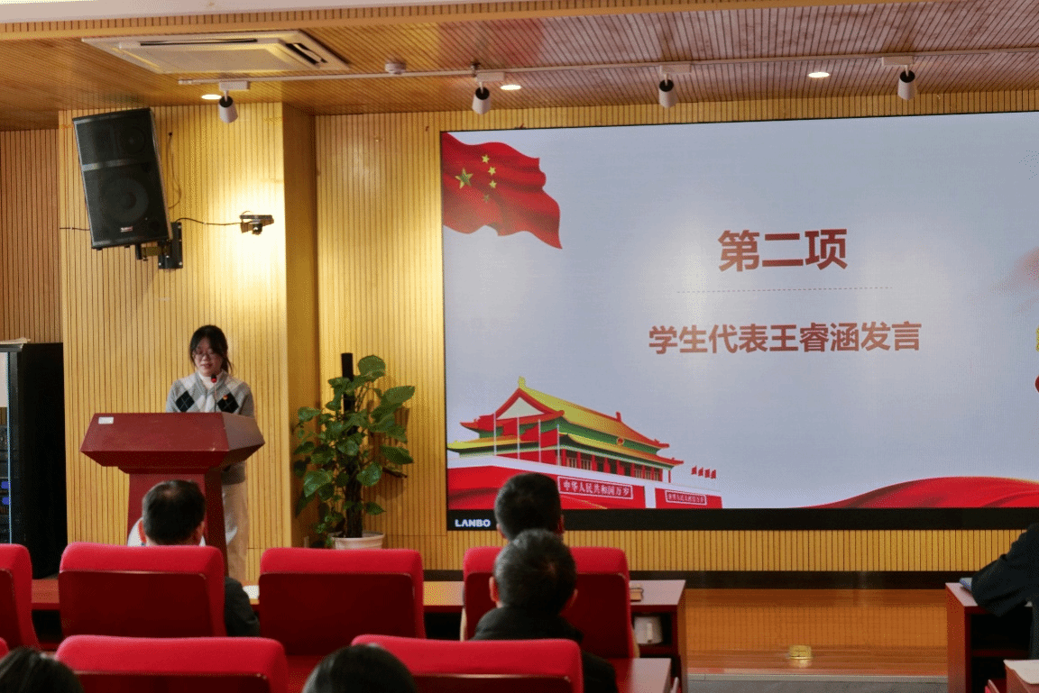 转正预备党员代表、情报学第一党支部王睿涵发言,表示要坚定理想信念,以高标准要求自己,向周围的优秀党员同志看齐,努力学习专业知识,认真履行党员义务和责任,牢记党的使命宗旨,积极投身于社会主义建设的实践之中,追求自身的全面提升。