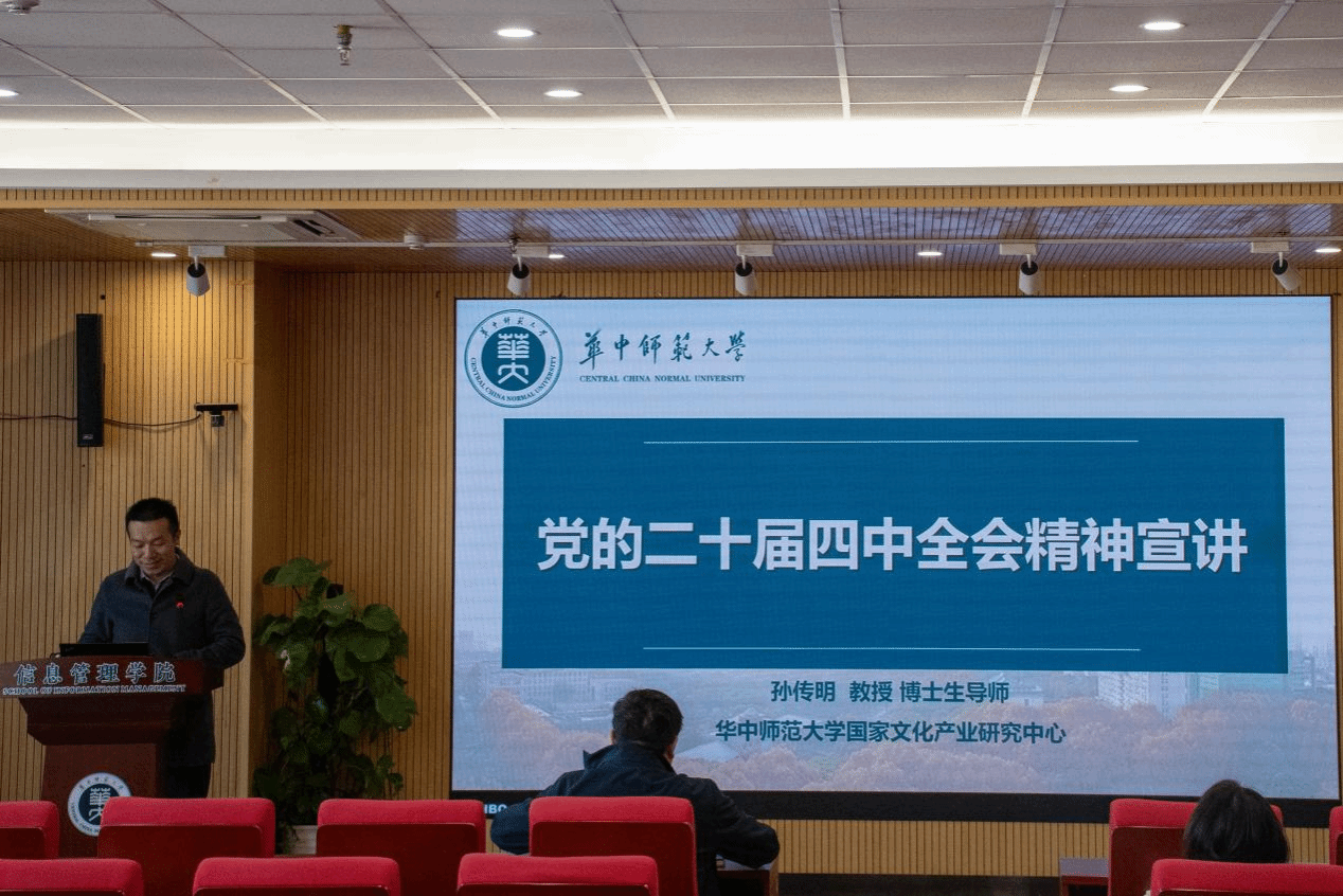 (通讯员 刘铭扬 黄符意可)2025年11月26日,学习贯彻党的二十届四中全会精神市委宣讲团报告会在南湖综合楼10001会议室举行。市委宣讲团成员、国家文化产业研究中心主任孙传明教授做宣讲报告。信息管理学院党委委员及全体教职工参加报告会。会议由学院党委书记王雨露主持。