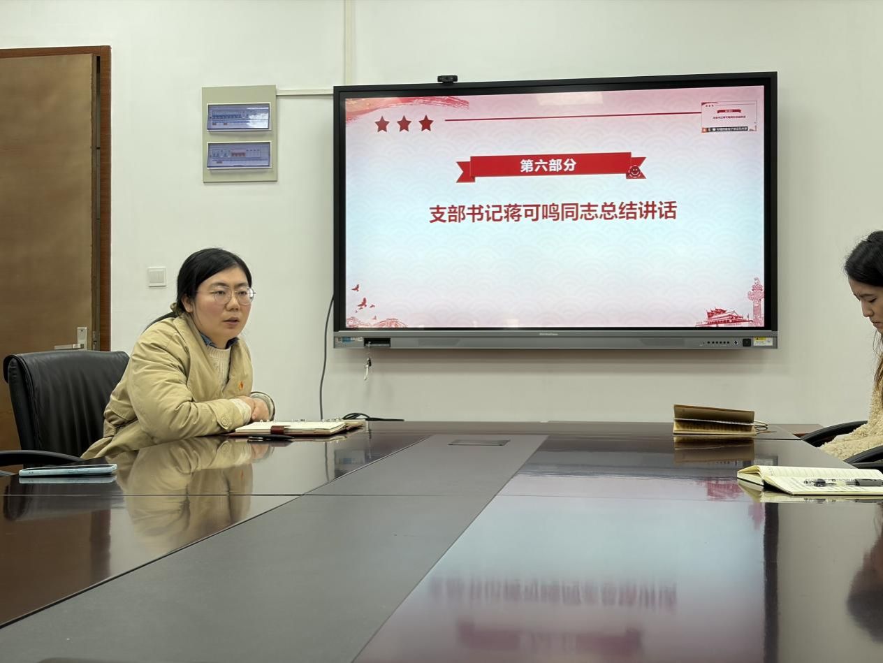 最后,支部书记蒋可鸣同志作总结讲话。她对本次主题党日活动的扎实成效给予充分肯定,特别指出在交流讨论环节,多位同志的发言紧扣主题、结合实际,既有理论思考又有实践感悟,展现了良好的学习成效和思想觉悟。同时,蒋可鸣同志强调,各位党员要勤于思考、交流思想,从而凝聚共识,发挥先锋模范作用。