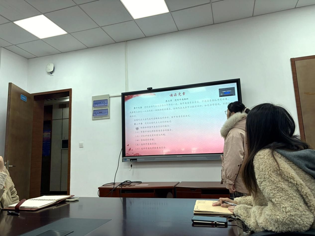 活动伊始,全体党员同志庄严肃立,重温入党誓词。铿锵有力的誓言回荡在会场,让每一位党员再次接受思想的洗礼,铭记入党时的庄严承诺和坚定决心,进一步凝聚起对党忠诚、为共产主义事业奋斗终身的信念力量。随后,与会同志集体诵读《中国共产党章程》第三章“党的中央组织”相关内容,深入学习党的全国代表大会、中央委员会等重要组织的职权与运作机制,切实增强对党的组织架构和制度规范的理解与把握,筑牢遵规守纪的思想根基。