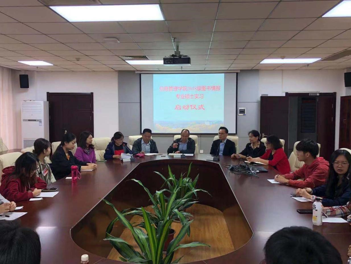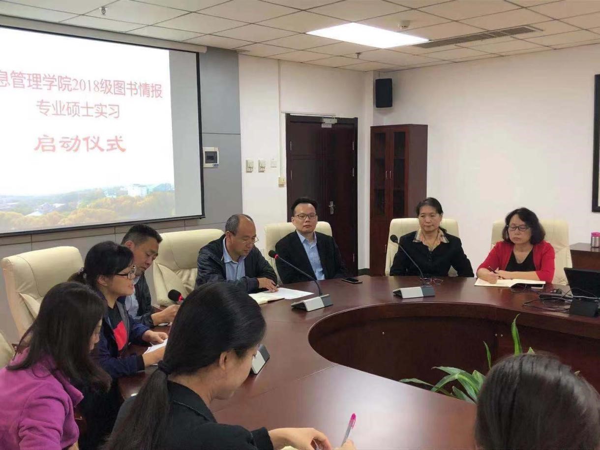 (通讯员 吴英)10月8日上午9点,信息管理学院2018级图书情报专业硕士实习启动仪式在我校图书馆九楼风雅斋圆满举行。校图书馆馆长刘宝卿、副馆长缪玉堂、信息管理学院信息资源管理系系主任易明、信息管理学院校内实习指导教师陈菁华、校图书馆参考咨询部教师杨毅、校图书馆实习指导教师代表以及信息管理学院全体实习生参加了本次仪式。本次会议由校图书馆参考咨询部教师杨毅主持。