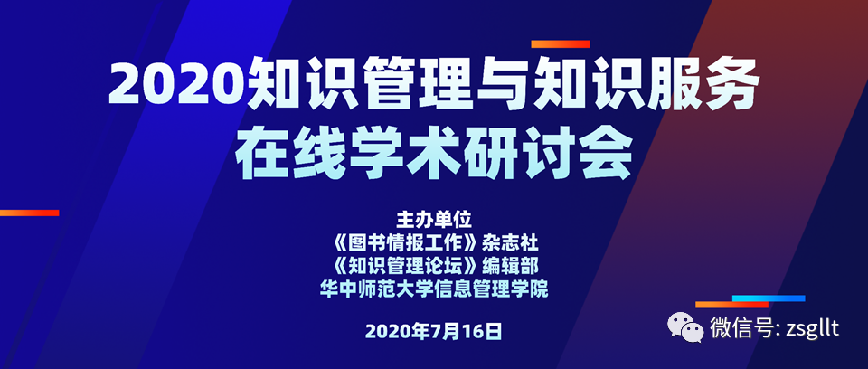 《图书情报工作》杂志社及所属《知识管理论坛》编辑部与华中师范大学信息管理学院联合主办的“2020知识管理与知识服务学术研讨会”于2020年7月16日通过腾讯会议(专家端)和学习通(会议端)在线上成功举办。本次会议主题是“新技术环境下知识管理与知识服务”,来自全国各高校图书馆、公共图书馆、专业图书馆、科研院所、期刊界等200余位代表参加了本次会议,并与专家一起共同探讨知识管理与知识服务最新发展,如何促进知识的按需聚合、多维挖掘、知识发现并推动新时代我国科技创新和产业升级。本次大会共安排了9场主题报告,专家报告极具前瞻性与代表性,突出理论性与实践性,观点新颖,内容丰富,为与会代表带来了学术饕餮盛宴。