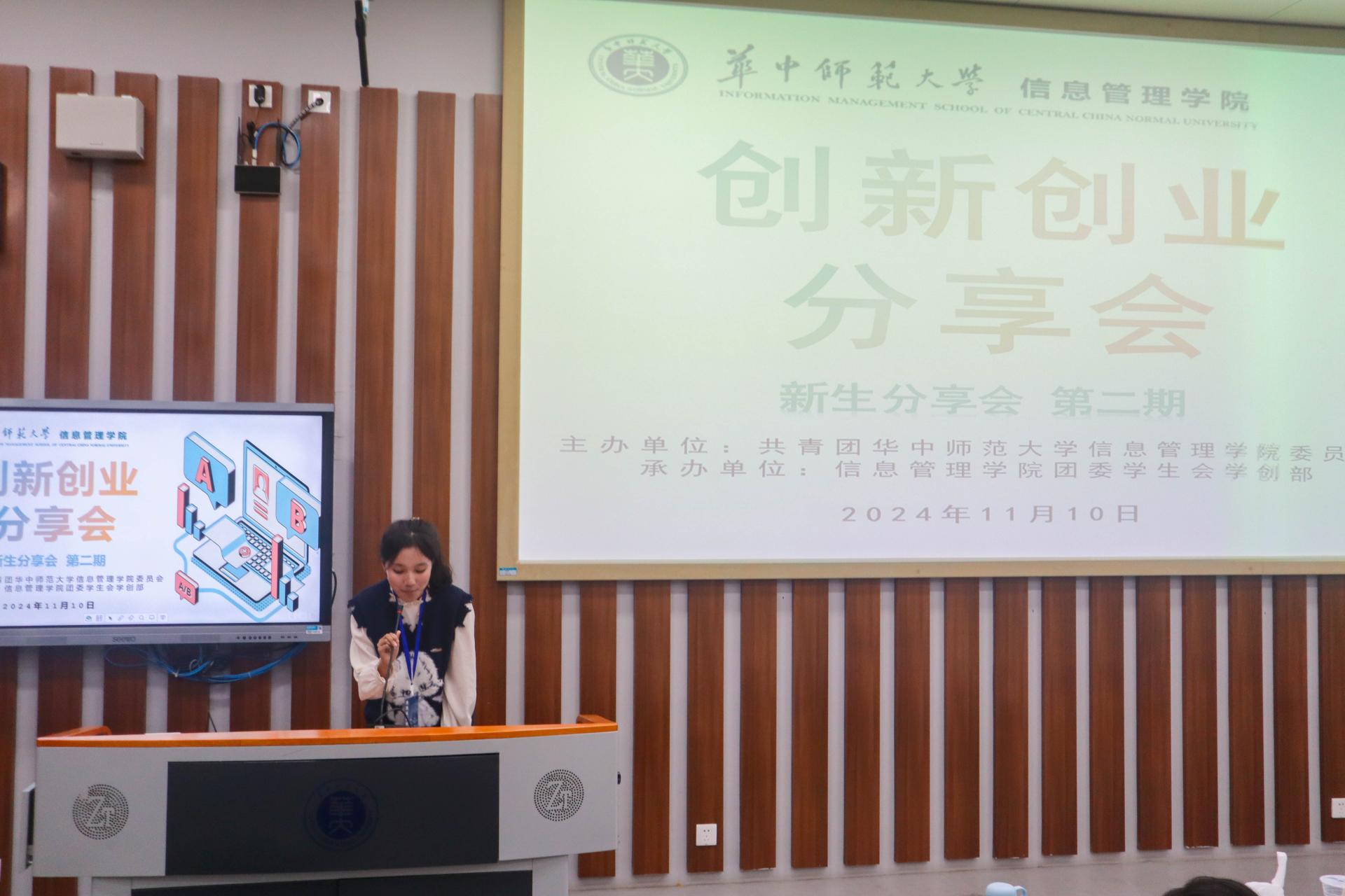 (通讯员 龙思勤 周奕辰)为助力新生深入了解创新创业赛事、积极投身创新创业实践,11月10日下午,由共青团华中师范大学信息管理学院委员会主办,信息管理学院团委学生会学创部承办的“启梦南湖,朋辈引航”第二期新生分享会于南湖综合楼N301教室举行。会议由2024级张慕颖主持。