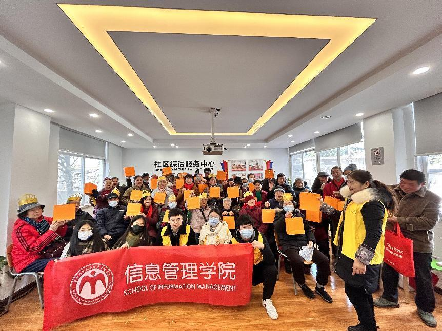 (通讯员 赵宏斌 王梓妍)为让青年大学生深入社区,以“大学生社区实践计划”为契机,主动融入敬老爱老的行动中,12月22日上午,由信息管理学院研究生、2021级本科生及2023级本科生各团支部代表组成的志愿服务队,来到中南路街道涂家岭社区开展敬老爱老助老活动,本次活动以“金辉无限好,爱意满暖冬”为主题,为社区老人开展12月生日会,包括了庆祝生日、才艺表演、游戏互动等环节,为老年人送上温暖与关怀。