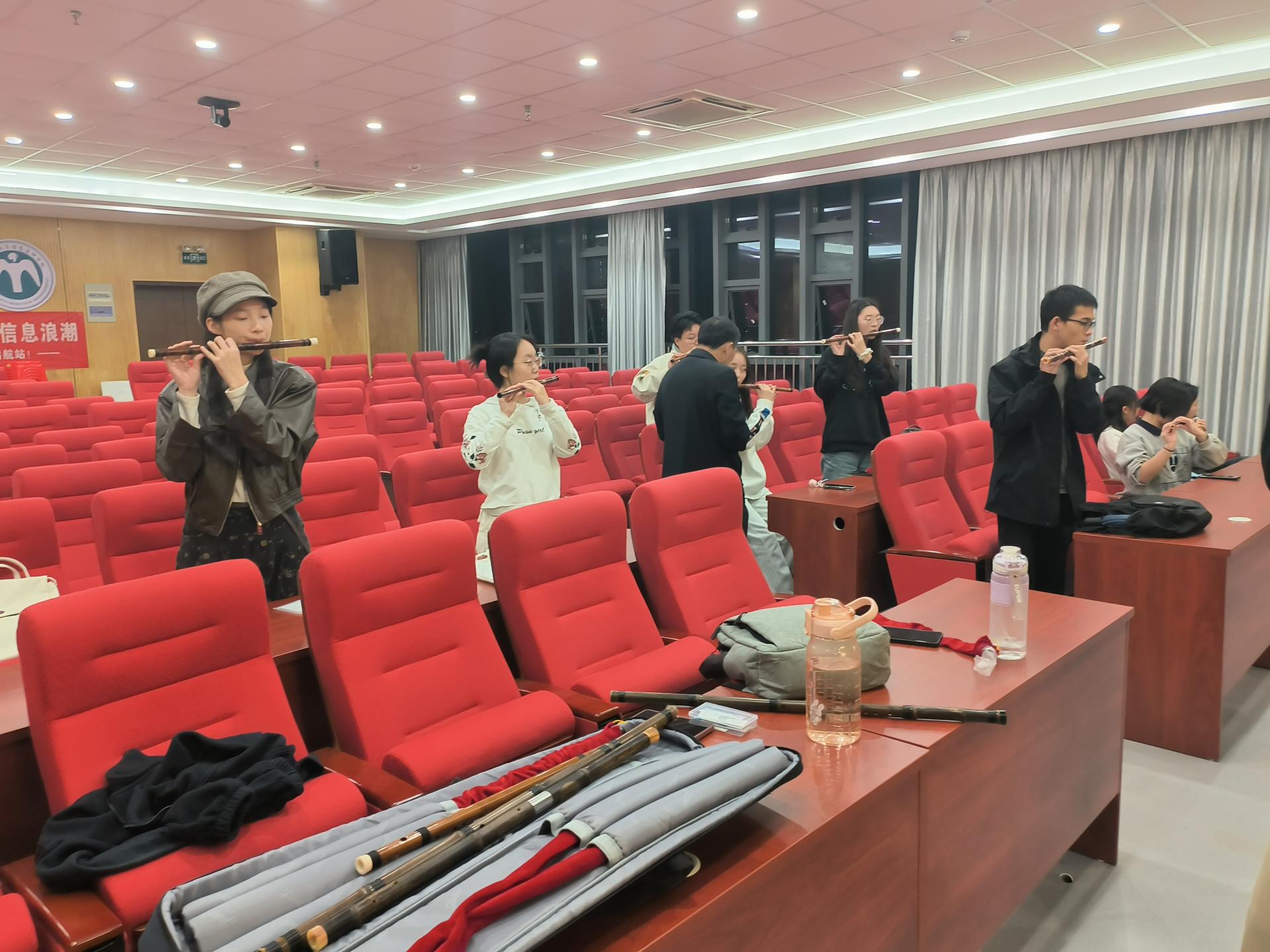 迎新会结束后,在娄策群老师的指导下,到场的新成员们即刻开启了第一次晚练。晚练过程中,每位同学都热情高涨,积极投入到练习之中。经过一番努力,有不少同学已经能够比较轻松地吹出声音,初步领略到了笛箫演奏的乐趣,这也为他们后续的学习增添了信心。