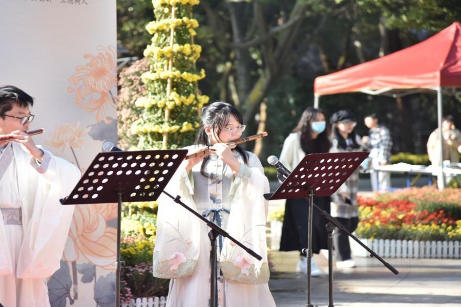 她印象中最深刻的一场活动是由2019级成员首创的“春节送你一首歌”。当时正值疫情防控时期,协会成员们策划开展“送你一首歌”春节线上活动,旨在为大家送温暖、传祝福,杨琛由此感受到了积极向上的力量。这次活动反响热烈,逐渐成为协会每年的寒假特色活动。对于杨琛来说,笛箫协会不仅教授民乐,还致力于传播中华传统文化,给华师学子们提供学习和交流民族乐器的平台。提起笛箫协会的优势,她莞尔一笑,尽显自豪神态,说道:“我们最大的优势就是我们的口号——‘零基础入社,包教包会’。这不仅仅是一句口号,也是我们每一代笛协人身体力行的准则,包括我在内的很多同学一直都很热爱乐器,但碍于各种原因一直没有机会学习。笛箫协会的初心就是为这样的同学们提供学习的机会,让每个人都能追求自己热爱的东西。”