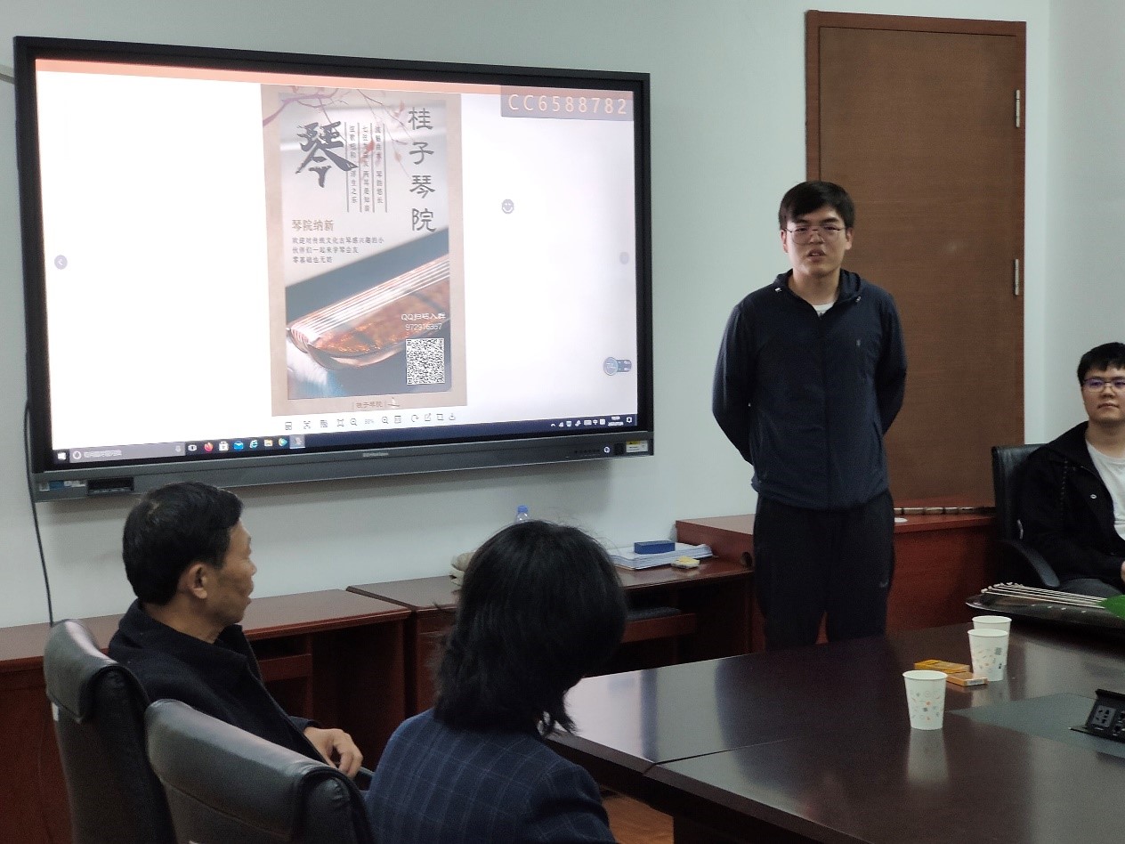 本次会议包括三项内容。会议伊始,丁钱铭对协会今年招生情况进行公示并表示道:“今年在百团招新活动中协会共招新三十九人,社团规模已有百人,是协会良好的开端,今后要把握住参加各个活动的机会,力争将古琴协会的特色与我国传统相结合,发扬传统乐器文化,提高协会的综合能力,积极开展社团各项功能,吸引更多有兴趣的同学加入社团。”同时,丁钱铭对协会工作人员进行简单介绍并对各个部门进行人员的招新宣传。其中,关于协会招新,娄策群老师表示:“协会招新状况良好,前景可期,协会要在招新宣传上扩大规模,在优良开端的基础上努力开展社团活动,积极发展社团,增强社团凝聚力和影响力。”