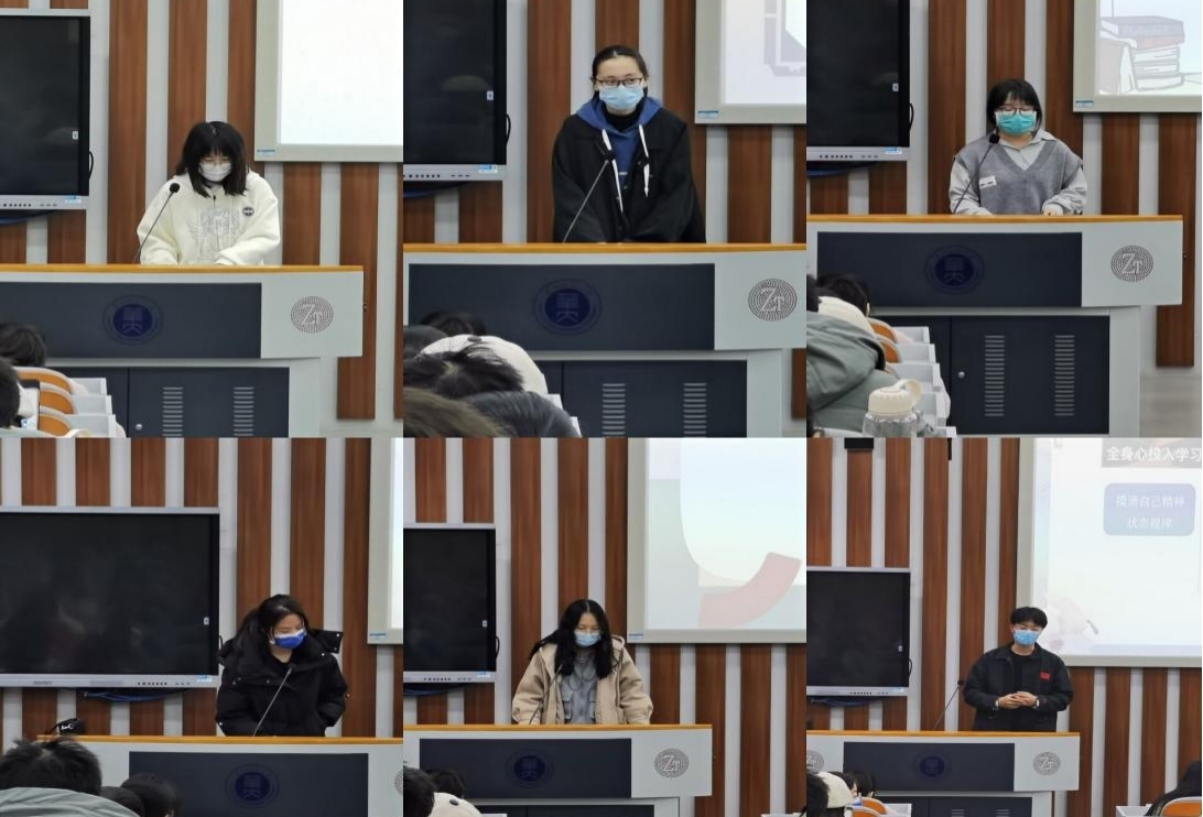 最后进入到学习分享交流环节,由上学期取得优秀成绩的陈静怡同学、龚文洁、吕洁同学和巨大进步的陈雨晴、侯鑫、李喆同学进行个人经验分享。六位同学各显所长,将自己的学习方法和技巧倾囊相授,勉励同学们共同进步、一起提高,在场的同学们听后感受良多、大有裨益。