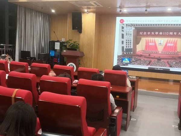 随后是全体支部成员共同观看学习十九届六中全会视频。在视频学习结束后,团支书李久肖随机抽取部分同学进行学习习近平在纪念辛亥革命110周年大会上的讲话的心得分享,并赠予小礼品。同时,为了进一步巩固各支部成员对十九届六中全会中学习的重大事件和规划制度的学习,团支书李久肖还通过提取关键词,进行提问抢答。本环节的设置,激励了支部成员学习进一步学习贯彻党的十九届六中全会精神,深入了解辛亥革命。