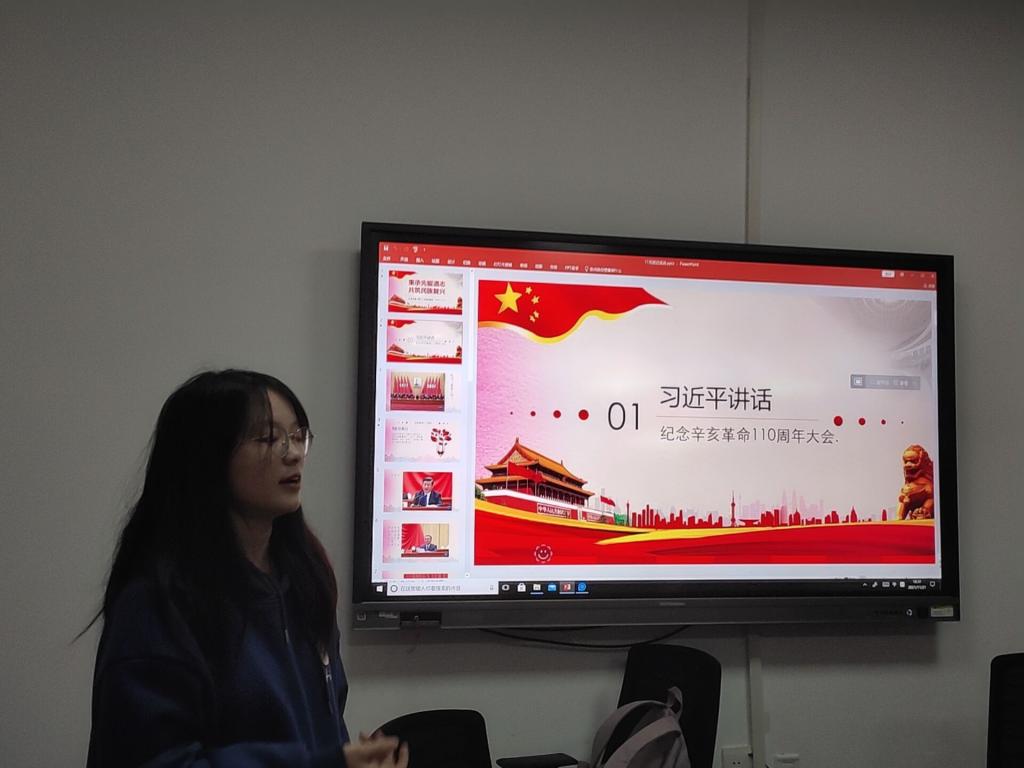 首先,2020级电子商务二班全体同学积极参与,按时到场入座并完成签到。此次团日活动准时开始,主持人朱力令对此次团日活动作了简短的介绍,使全体同学明确此次团日活动是在建党100周年且恰逢辛亥革命发生一百一十周年的重大背景下所开展的党史学习教育活动。随后,在主持人的带领下,全体同学认真学习了习近平总书记的讲话精神,积极发表了自己的深刻感悟。
