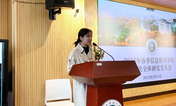 为进一步加强研究生日常管理工作,助力毕业年级学生的毕业、就业进程,促进研究生的全面充分发展,信息管理学院于2023年3月10日下午17:30在综合楼N10001会议室举行研究生大会。本次活动由研究生辅导员张思琪老师主持,学院党委副书记王涛,研究生辅导员王妞妞老师受邀参会,信息管理学院20级、21级硕士研究生线下参会,全体博士研究生和22级硕士研究生线上参会。