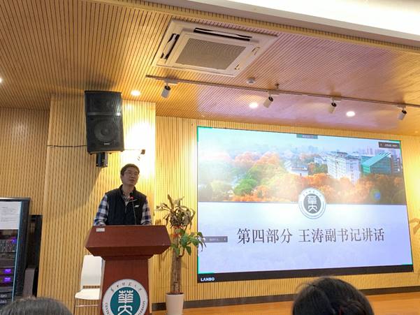 会议进入第三项,由王涛副书记发表讲话。首先,王书记回顾了学院过去一年的精彩表现,介绍了我院师生在“三大球”比赛中获得的两冠一季的好成绩以及数量可观的论文和专利成果,高度肯定了学院在文体活动、科研成果方面的优异表现。接着,王书记指出当前我院研究生发展过程中存在的问题与不足,从学风建设、典型培育、日常管理等方面指明了后续发展着力点。最后,王书记鼓励大家“动起来”、“活起来”,以开局就是决战、起步就是冲刺的气势和决心迎接新学期的到来。