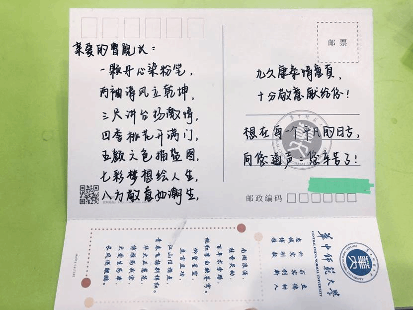 “春蚕到死丝方尽,蜡炬成灰泪始干”,老师们不图回报的指导与支持是帮助全体同学在研究生学习生涯中行稳致远的强大动力。明信片寄语正是通过传统的书写传递方式,在一笔一划之间,加深师生之间的情感交流,促进相互之间的了解,从而筑起和谐温暖的导学关系。此次明信片活动形式新颖,富有我院特色,在师生的一致好评中圆满结束。