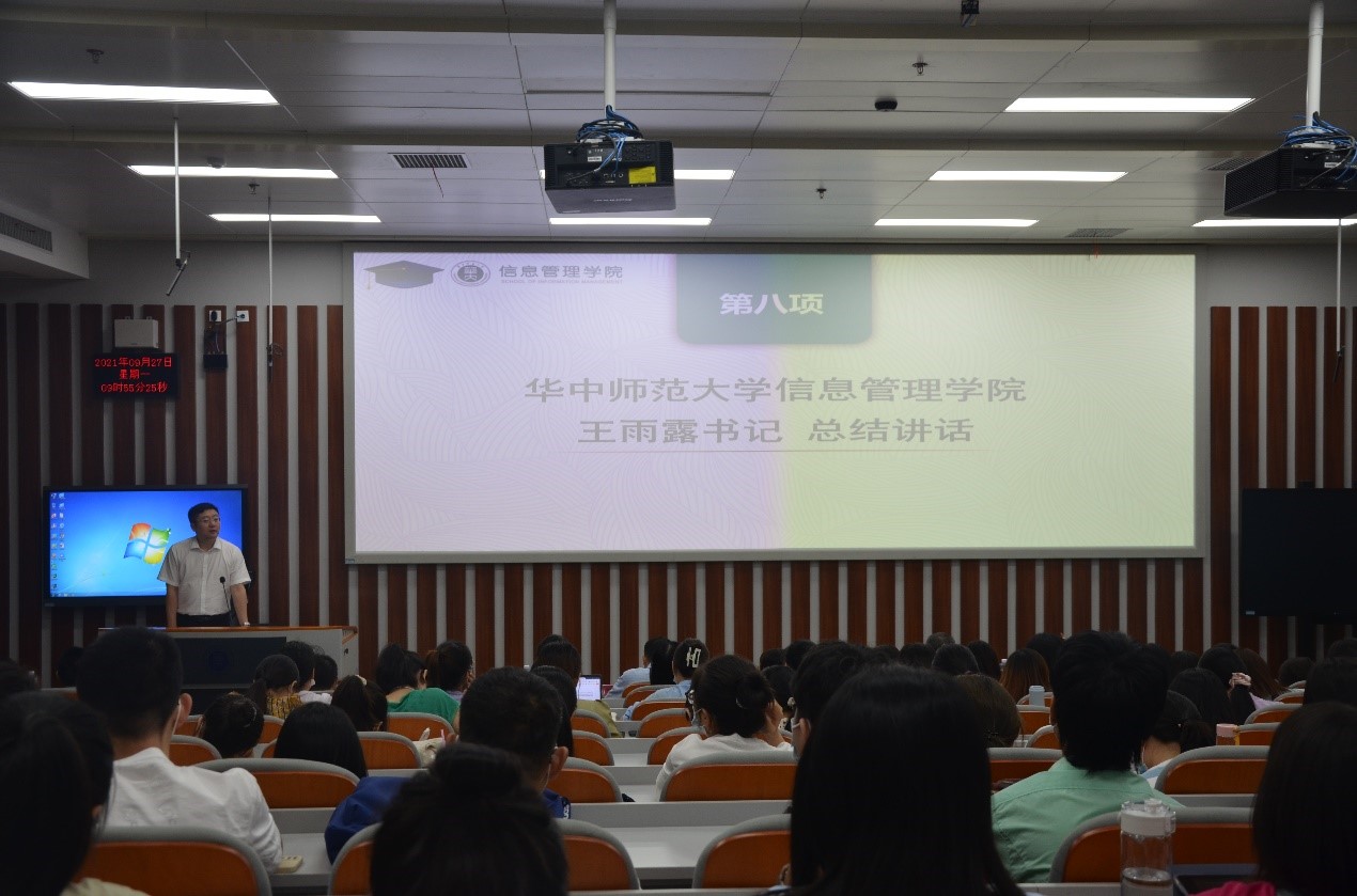 2021年9月27日9:00,华中师范大学信息管理学院2021级研究生开学典礼在南湖N327报告厅圆满结束。本次开学典礼由曹高辉副院长主持,来自湖北省科技信息研究院的老师受邀出席,我院老师和全体研究生新生到场参与。