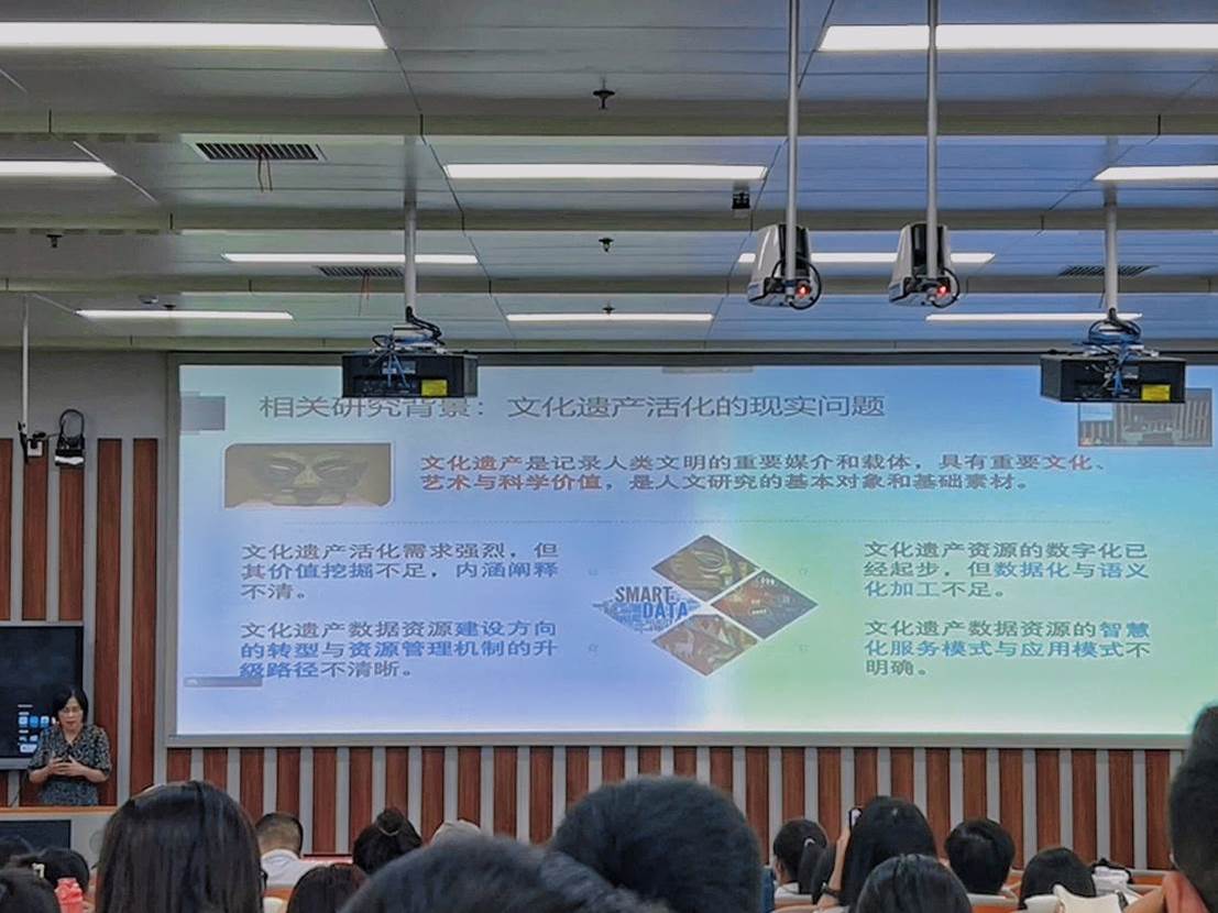 讲座伊始,高老师先向大家介绍了文化遗产活化的现实问题,让大家了解到相关研究背景,并剖析了数字人文与图情档相结合的重要意义与相关研究框架。随后,高老师以“数字敦煌”为例阐述了各类型文化遗产数字副本的推广与使用,其有助于保存珍贵文物的历史面貌、保护文物内容与载体的原始关联,对实现濒危文物资源的科学性和永久性保存具有重要意义。