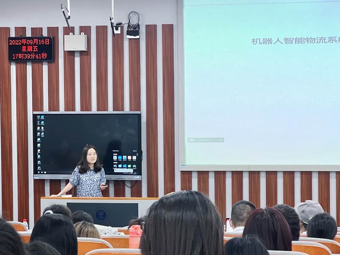 接着,吴老师针对机器人智慧物流系统做了详细的介绍:国内已有菜鸟、京东和快仓等公司成功应用机器人智能物流系统,该系统的核心思想是利用移动机器人将存储商品的移动式货架搬运到拣货站台,拣货人员拣取商品后再由机器人将货架送回存储区存储。相比传统拣货系统,机器人智能物流系统提高了拣货效率、准确性以及仓库空间利用率,缩短了仓库部署和调试时间,并可根据客户需求的变化实时、动态调整仓库布局结构,特别适合需求波动性大、时效性强的电商企业的订单拣选。
