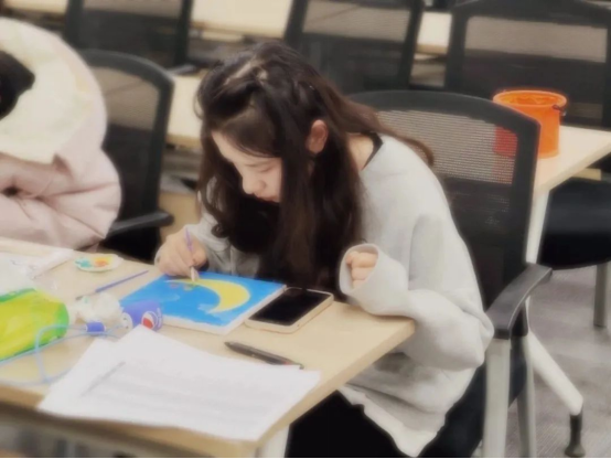 本次活动由计算机学院董彤瑶同学和信息管理学院黄奇峰同学负责场地布置、材料分发与现场布置。活动现场,各参与者均在规定时间内完成了作品绘制,他们的作品风格各异、富有艺术气息。