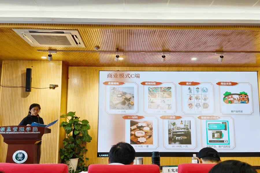 寇津赫团队“心穹——基于多模态反馈与自适应生成的社交焦虑数字疗法系统”项目关注文博产业数字化转型需求强烈但实施困难的问题,力求提供从设计到系统集成的全流程服务,采用AI内容生成、数字孪生平台、AR/VR整合等方法,目前已与陶瓷博物馆等项目达成良好合作。田东浩“大模型环境下人智协同的产业链词表编制研究”项目敏锐捕捉到人智协同的创新机遇,积极探索大模型环境下专业术语体系的标准化编制路径,尝试通过人智协同模式完善产业链知识体系。刘艺博团队“基于用户文化认同与情感价值的国风文创产品消费行为与市场机会研究”项目立足文化自信与国潮经济热潮,通过构建“文化认同—情感共鸣—购买行为”的影响机制模型,为文创产品的精准营销提供了数据支撑。