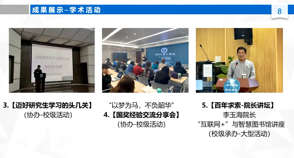 会议第一项,学术发展中心、新媒体中心、文艺体育中心、生活权益中心、办公室与团总支分别就过去一学期以来部门的工作开展情况、遇到的问题以及积累的经验与研会干部进行分享和交流,希望研会干部能够积极拓展工作领域,创新工作形式,努力将我院研究生会工作提升到一个新的水平。