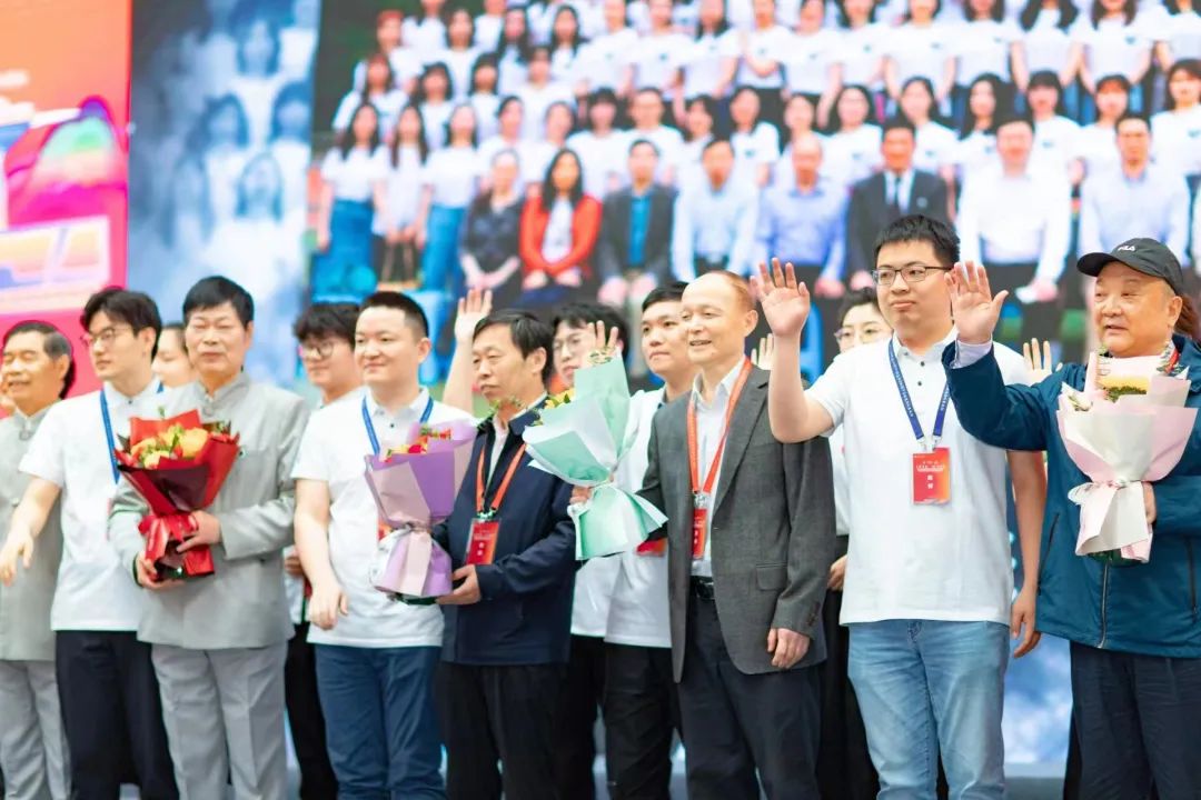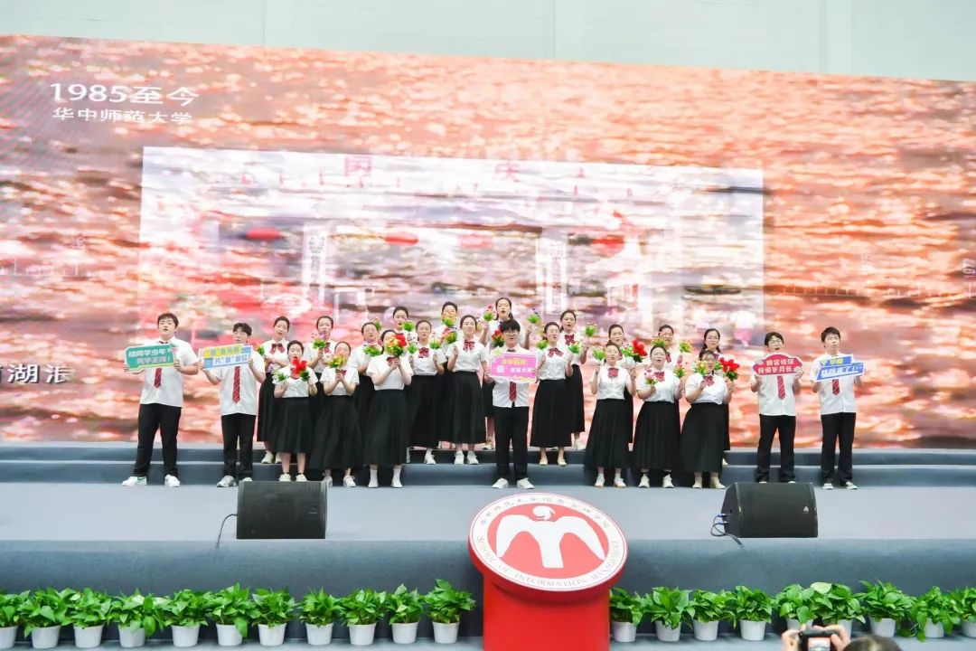 大会尾声,青年学生合唱《南湖秋月》,悠扬的旋律将大家带回到南湖湖畔那些流金岁月。一曲结束,为表达对信管学院学科创建103年、恢复办学40周年庆典暨校友会成立、华中师范大学120周年华诞的美好祝福,全场起立,齐唱《华中师范大学校歌》。