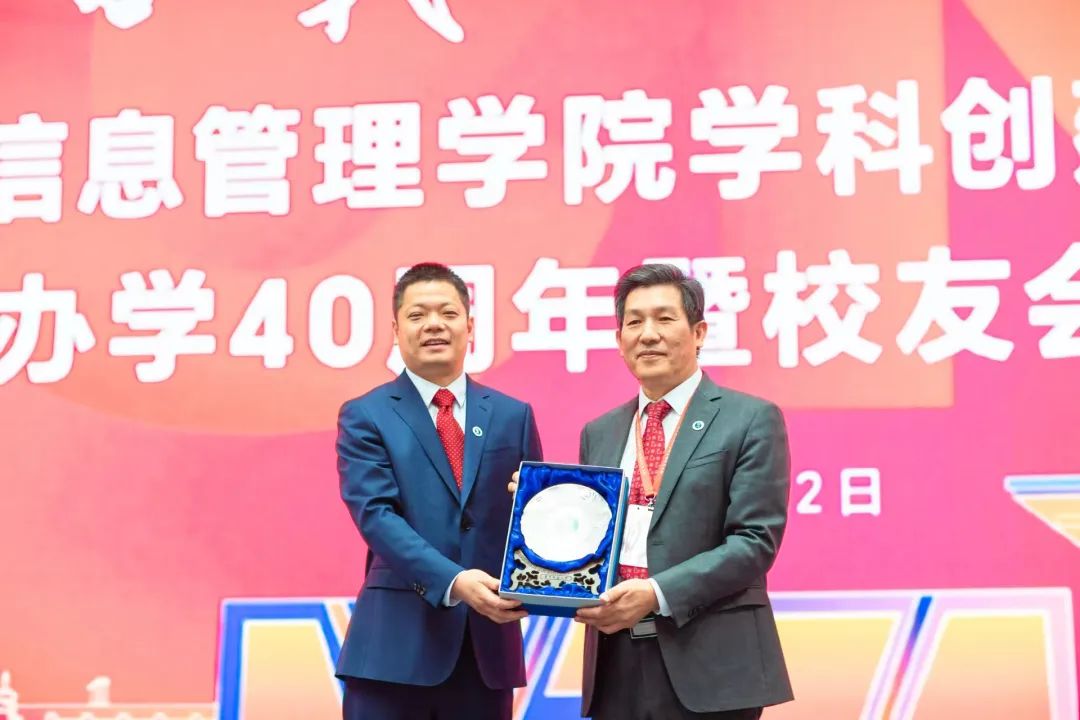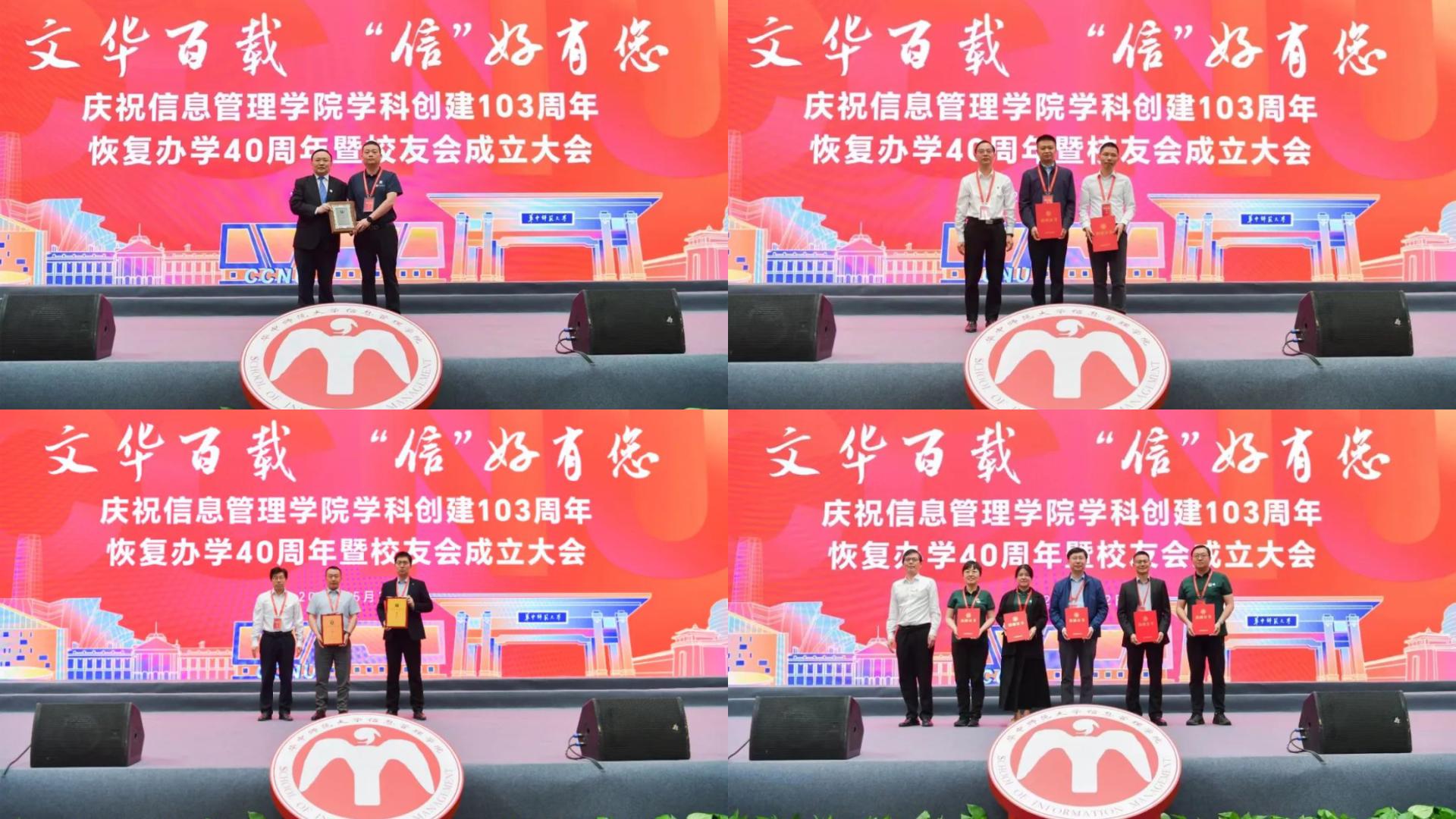 大会现场还举行了捐赠仪式,信息管理学院部分校友和友好合作单位慷慨捐资,设立多个奖助学金,助力学院学科建设和人才培养。