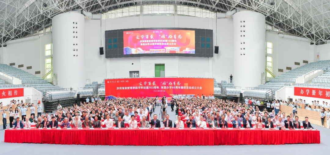 文华百载学脉不朽薪火相传,办学卌年初心不改再启航程。5月2日,我校信息管理学院学科创建103周年、恢复办学40周年暨校友会成立大会在佑铭体育馆举行。校党委书记夏立新、校党委副书记查道林、副校长彭双阶、校党委副书记陈迪明,以及各职能部门和学院(学部)负责人,各地方、兄弟单位代表出席会议。来自海内外各地的信息管理学院院友、学院退休教师以及师生代表,相聚桂子山,共忆年少事,共话校友情,共同促进学院发展,续写学院未来新篇章。大会由信息管理学院党委书记王雨露主持,并在线上同步直播。