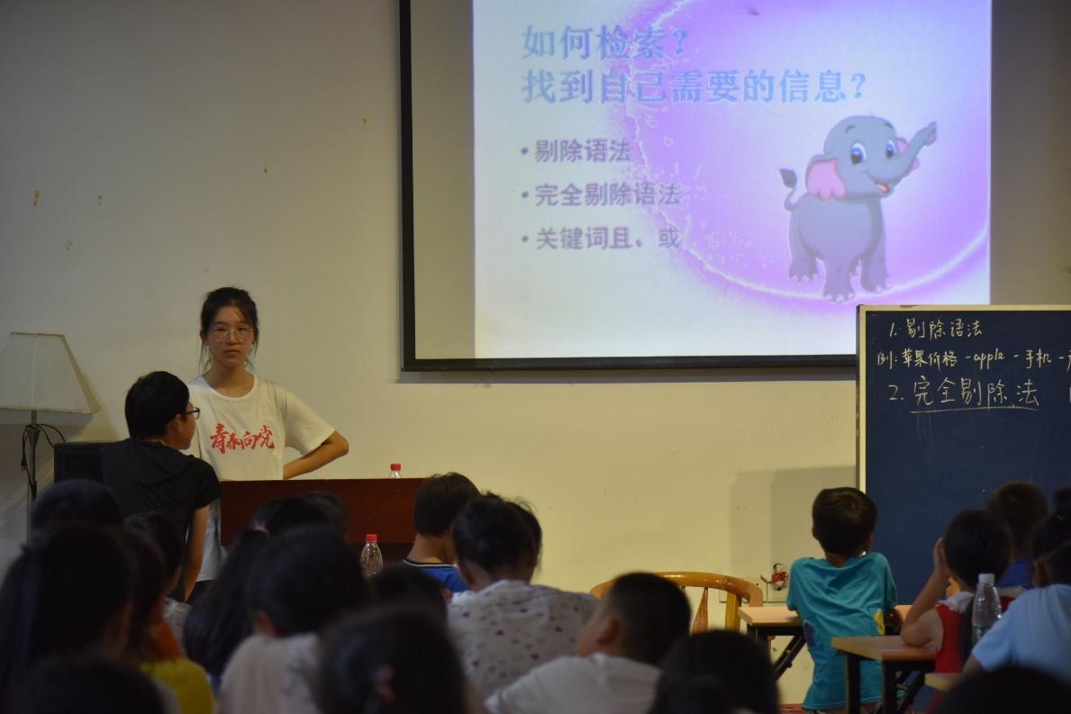 (通讯员 魏怡芸 宋茂玲)生逢其时,让我们携手进入e时代。灵活运用信息,做时代弄潮儿。为提升农村中小学生信息检索能力,培养学生信息安全意识,7月9日下午,信息管理学院追光实践队于湖北省咸宁市赤壁市赵李桥镇羊楼洞村雷家大院开展了信息素养讲座。追光实践队队员兼讲座主讲人明冉充分运用所学专业知识,为小朋友们介绍信息检索以及防诈骗内容,旨在积极响应国家信息安全政策,引领信息素养入课堂。