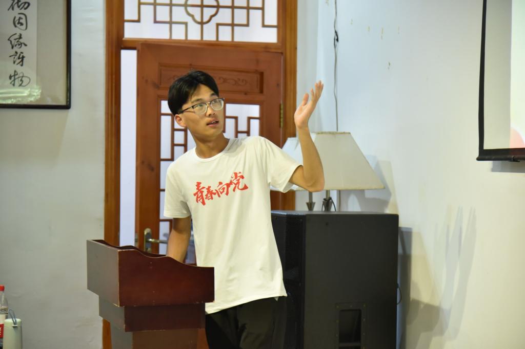 (通讯员 戴欣妍 摄影 宋茂玲)为深入贯彻习近平新时代中国特色社会主义思想,筑牢新时代青年理想信念之基,引领新时代青年立大志、明大德、成大才、担大任,7月10日上午,华中师范大学信息管理学院追光实践队开展思政课程,对赤壁市羊楼洞村的学生们进行理想信念教育。志愿者郑国杰担任思政课主讲老师。