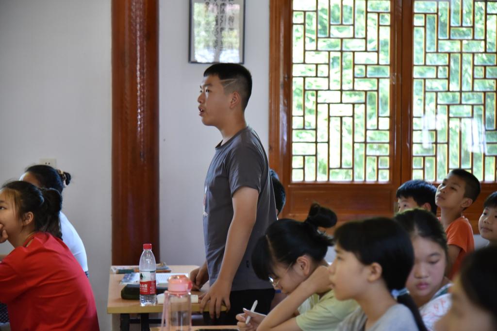 读红色故事,品英雄精神。在阅读了小英雄雨来、小兵张嘎、刘胡兰等革命故事后,唐瑞艺同学说:“这些小英雄保家卫国时的年龄与我们此时差不多大,他们英勇爱国的精神令我十分敬佩,也十分值得大家学习。”此次报名追光实践队暑期支教班的学生多为羊楼洞村的小学生,在思政教育资源尚缺乏的情况下,品读红色故事对他们进行思政启蒙有着重要的作用。