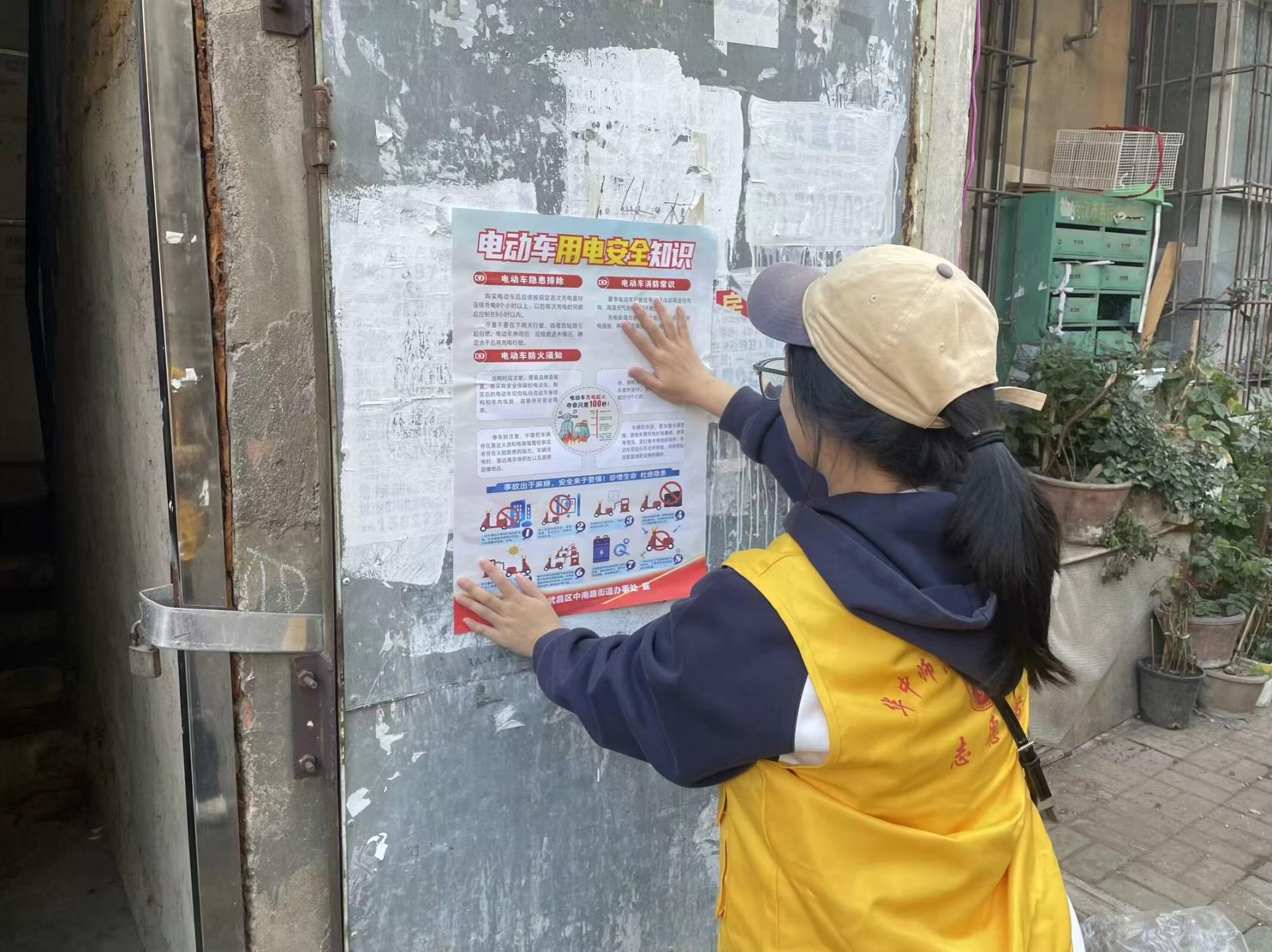 与此同时,志愿者们在社区的显眼位置张贴消防安全海报,这些海报以图文并茂的形式,生动形象地展示了消防安全知识,他们将海报张贴在社区公告栏及其他人流密集区域,吸引居民驻足观看。