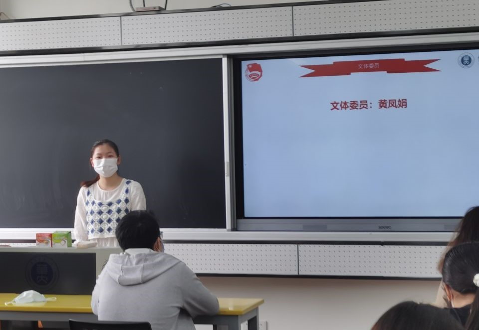 活动伊始,由望凌锐进行参会人员的点名签到。随后他简要介绍了班级文体委员的换任,由团支部成员黄文娟接任该职位。简单介绍后,望凌锐点明本次团日活动的主题——“学习冬奥精神,不断超越自我”。他带领大家观看习近平总书记出席北京冬奥会总结表彰大会上的讲话,习近平总书记强调:“要充分运用好冬奥会精神,让其成为我国推动发展的新动能,实现冬奥会遗产利用效益最大化。”同学们认真观看视频,初步了解到了冬奥会精神的重要性。