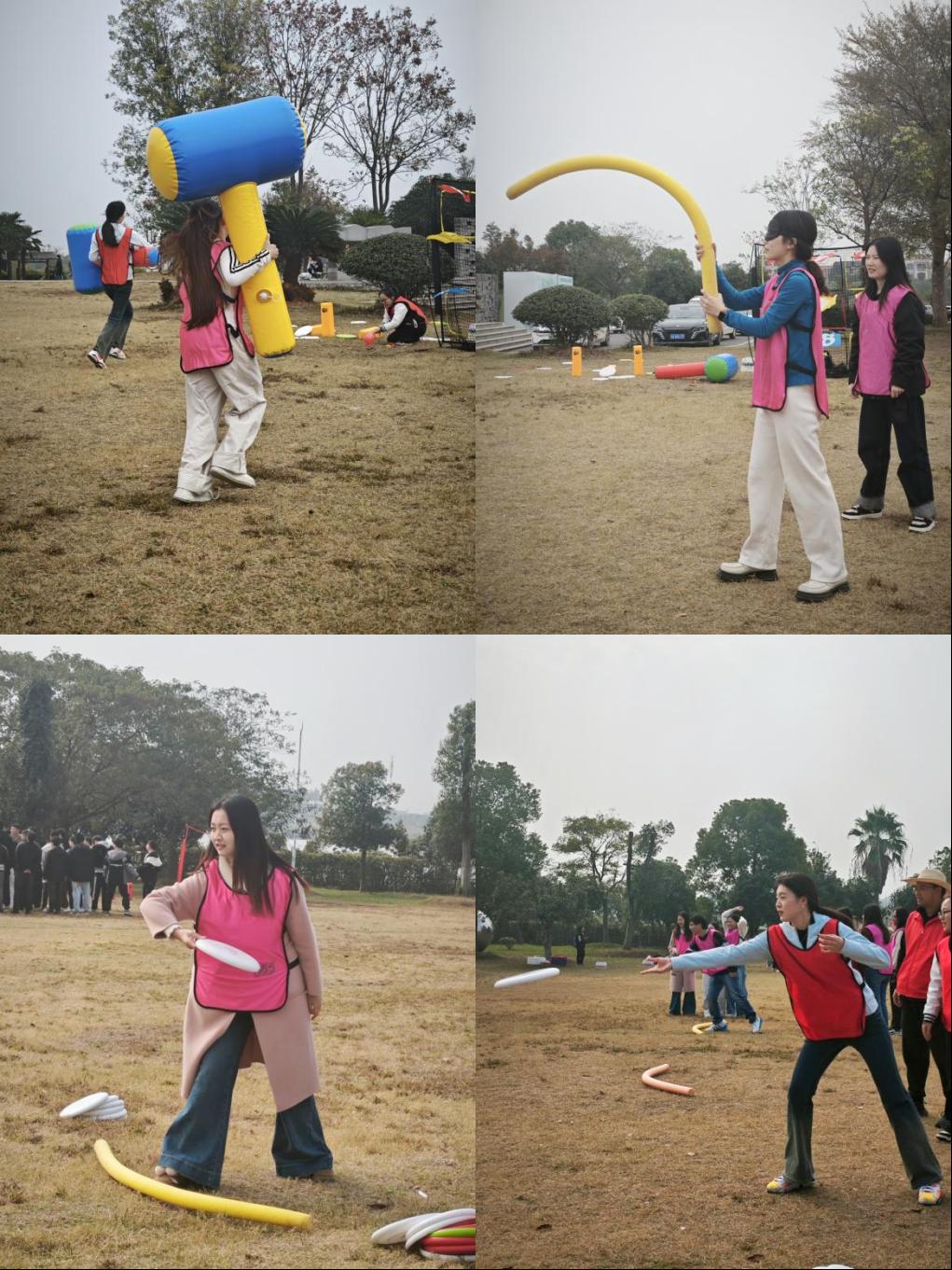 紧接着,便进入了团队竞技环节,师生们被分为几个小组,参与了蒙眼互打、趣味飞盘等项目。各小组直面挑战、全员参与、相互鼓励,闯过一个又一个难关,取得了一次又一次胜利。这些活动不仅考验了团队成员之间的沟通与协作,也锻炼了每个人的应变能力和领导力,提升了团队的凝聚力。