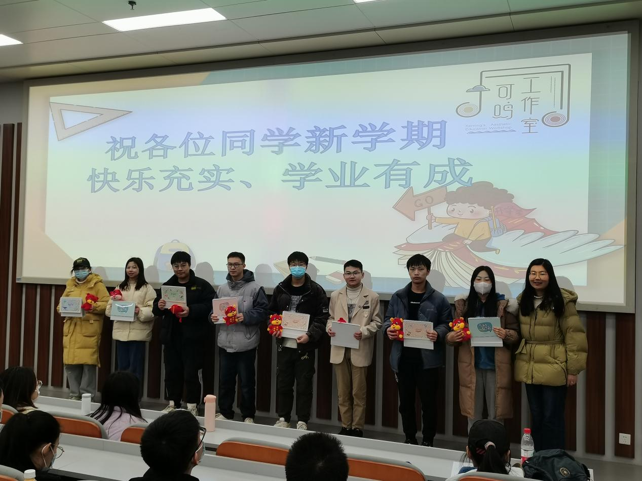 蒋可鸣老师祝福并叮嘱同学们:“新的一年祝大家新年新气象,在精彩缤纷的北京冬奥会和温馨幸福的新春佳节伴随下大家度过了难忘的寒假,希望大家伴着冬奥会的拼搏精神尽快投入到新学期学习工作和生活中,在自己的目标上攀登地更高,2020级全体同学团结向上,一起加油向未来。”接下来,晚点名来到抽奖互动环节,八位幸运儿各自分享了他们的寒假生活和新学期的计划与愿望。
