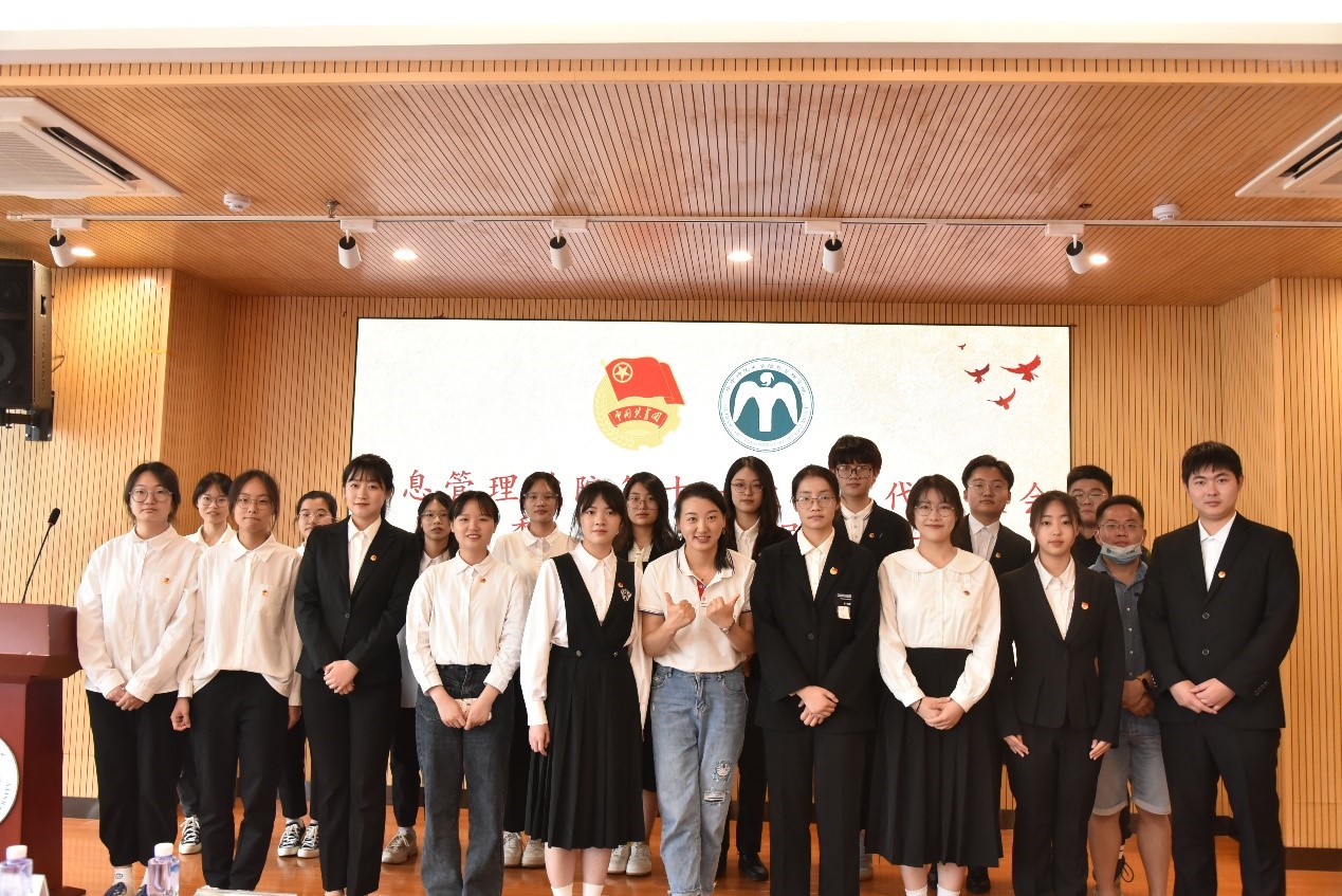 (通讯员 戴欣妍 吕洁 韩宝瑾)5月8日下午,信息管理学院第十一届学生代表大会暨团委、学生会换届选举大会在南湖综合楼10001举行。此次换届选举大会旨在调整学院学生工作骨干的人员分工,培养新一届的学生工作骨干,推进新学年团学工作顺利开展。信息管理学院党委副书记王涛,团委书记兼2019级、2021级辅导员肖丽霞,2020级辅导员蒋可鸣,2018级辅导员卢旺,各年级学生代表出席本次会议。大会将选举出两名学生团委副书记、两名主席团成员和一名融媒体中心主任。
