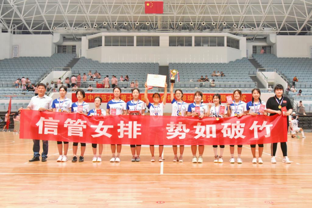 (通讯员 郑欣怡 刘晨 摄影 黄承轩)5月27日晚,生命杯排球决赛于佑铭体育馆举行。继文华杯信管女篮卫冕冠军后,信管女排再创辉煌,以2:1的佳绩战胜数统女排,勇夺冠军,信息管理学院喜提“双冠王”。信息管理学院本科生辅导员肖丽霞、蒋可鸣、学院本研学生到场为信管女排加油助威。