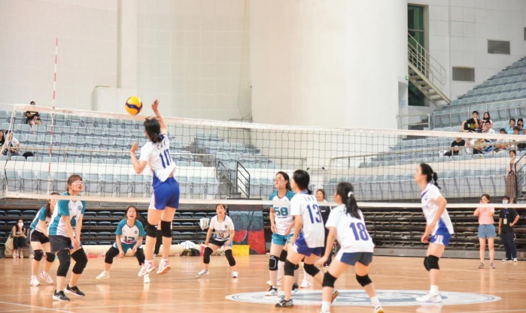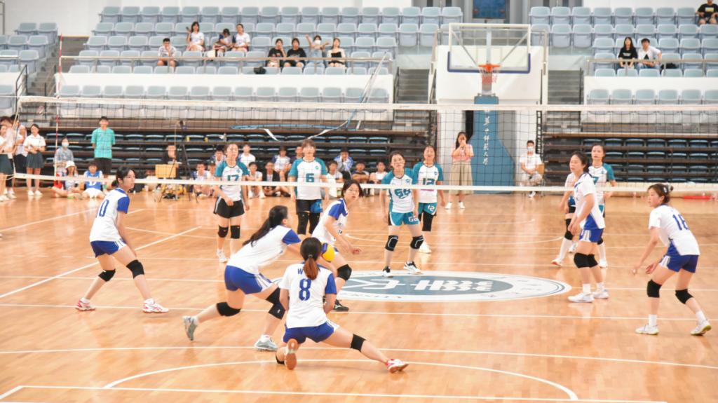 比赛开始前,现场全体观众及运动员起立,面向国旗,奏唱国歌。男排结束后,在全场的热情欢呼中,信管女排与数统女排的冠亚军争夺赛正式开始。
