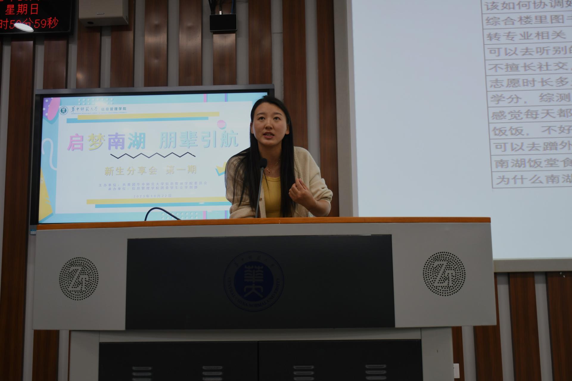(通讯员 韩俊超 李湘颖 杨晶晶)10月22日晚,信息管理学院2023级新生分享会在南湖综合楼N319教室举行,优秀学子2020级楼雨诺和2021级郑国杰分别就“学生工作”、“学习竞赛”两个专题为2023级新生进行了深入而细致的分享。此次活动旨在帮助新生快速适应大学生活,为他们的未来发展指引方向。