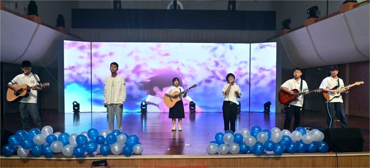 毛婉婷、郑世东等同学带来了《大话西游》片段的趣味配音,让经典影片趣味横生,将潜行科研的嘱托贯穿于幽默诙谐之中;由邱康佳、刘翠蝶等同学带来的吉他弹唱《起风了》,歌声悠扬,与观众们一起唱响青春的旋律,希望同学们把握大学时光的乐章和节奏;晚会尾声,行政老师们倾情朗诵《年少的你》,字里行间都是对新生们的殷切希望和谆谆嘱托。