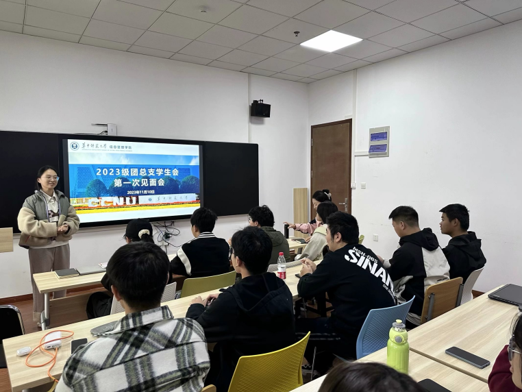 (通讯员 张欣怡 何露)为进一步加强我院2023级本科生团总支学生会队伍建设,提高各部门之间凝聚力与团结协作能力,11月10日,信息管理学院2023级本科生团总支学生会第一次见面会在南湖综合楼10006教室举行,2023级本科生辅导员肖丽霞、段雅芳、2023级团总支学生会全体学生干部参加会议,会议由段雅芳主持。