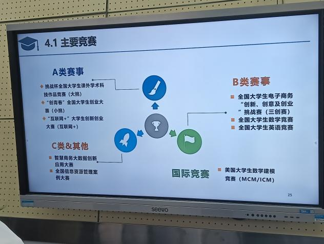 曾粤亮就体系、成绩和方法三个方面介绍信息资源管理专业的课程。他向同学们解读信息资源管理专业的人才培养方案,帮助同学们明确大学阶段的课程学习侧重点。