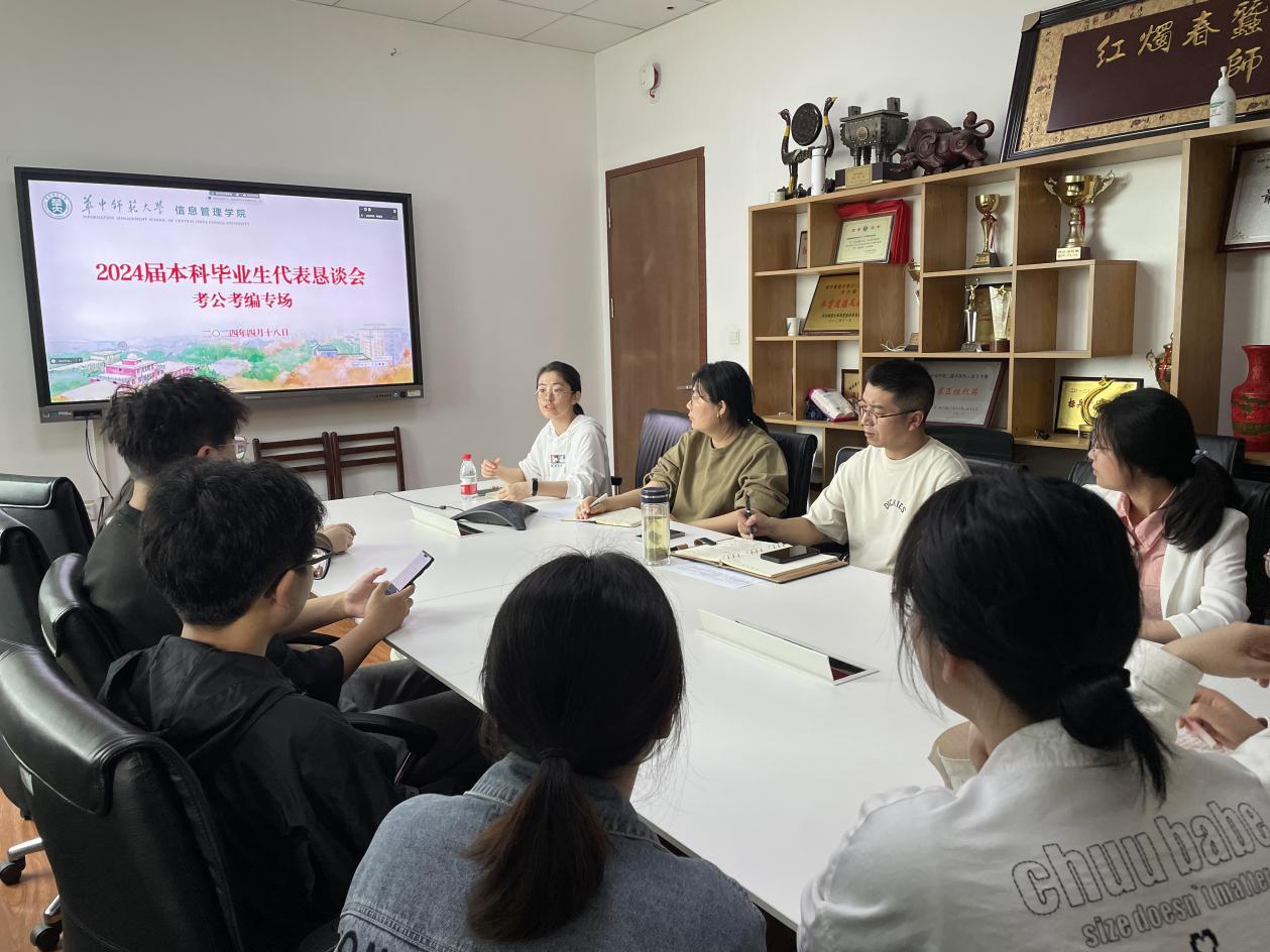 (通讯员 刘瑾洁 阮娜娜)为保障2024届毕业生高质量充分就业,开展好就业精准指导工作,4月18日下午,信息管理学院在南湖综合楼10042会议室召开2024届本科毕业生代表恳谈会第三场——考公考编专场。院党委副书记王涛,特邀嘉宾2019届校友李京琴、2021级研究生张小雅,本科生辅导员蒋可鸣及2024届本科毕业生代表参加。会议由本科生辅导员蒋可鸣主持。