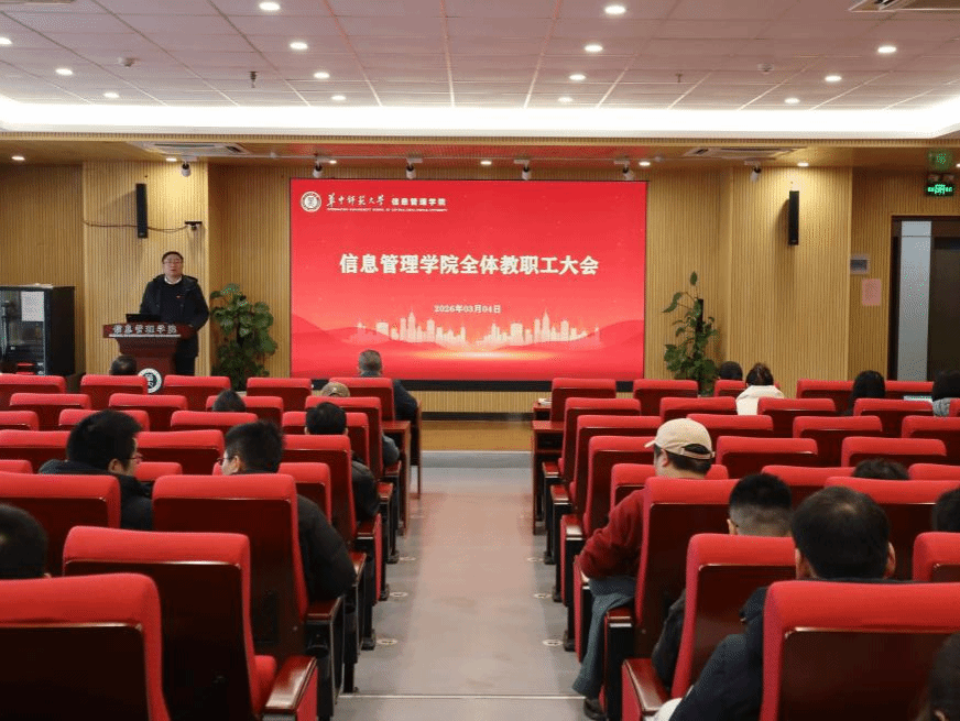 (通讯员 王乐 郭启帆)为明确新学期工作方向,凝聚全院教职工奋进力量,部署2026年重点工作任务,3月4日下午,信息管理学院新学期第一次全体教职工大会在南湖综合楼10001报告厅召开。学院党委书记王雨露主持会议,全体教职工参会。