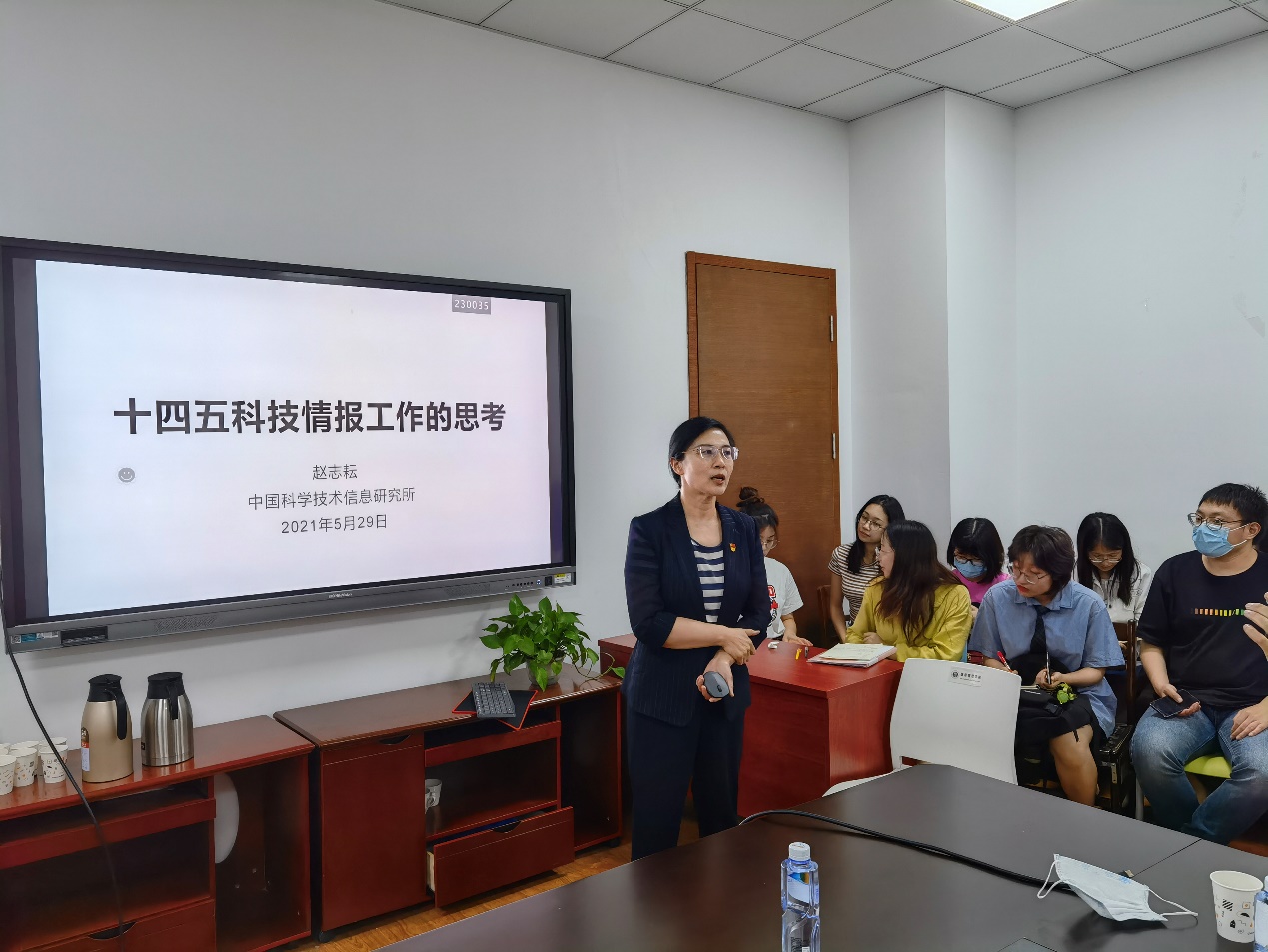 讲座伊始,李玉海院长对赵志耘教授进行介绍并对赵教授的到来表示诚挚谢意。随后,赵志耘教授从 “怎么干”、“谁来干”、“谁需要”、“需要啥”、“未来的科技情报到底需要干什么”这几个方面进行座谈。