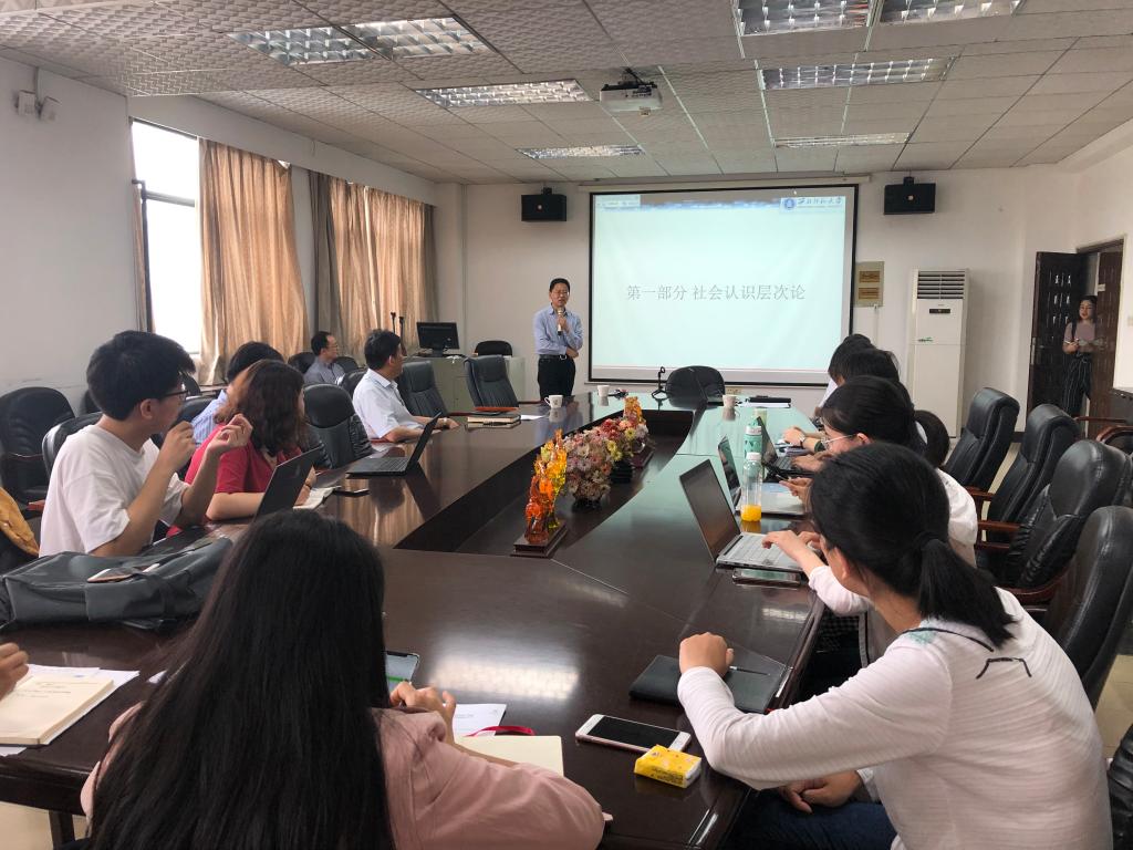 (通讯员 牟奇蕾)2019年5月17日下午2:00,西北师范大学图书馆教授周文杰来我校信息管理学院918会议室进行了题为“社会认识高级化与文献计量的学科基础”的讲座。本次讲座由曹高辉副院长主持,学院众多硕博研究生参与了此次讲座。