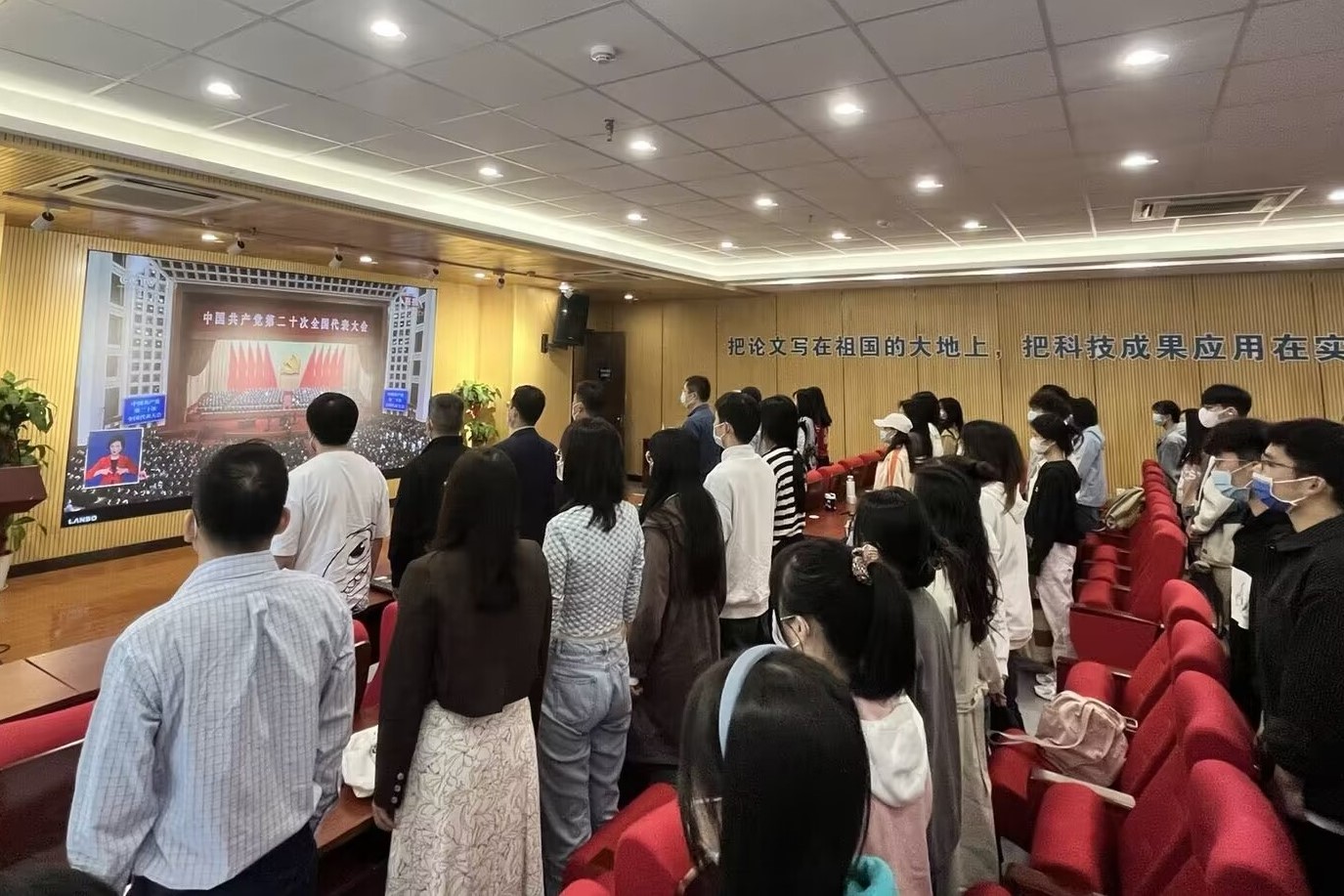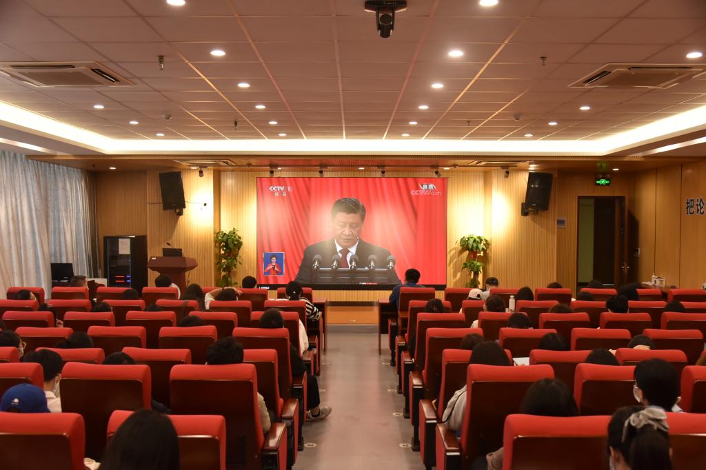 信息管理学院组织学院党政领导班子、党委委员、党支部书记、支委以及团学骨干在南湖综合楼10001报告厅集中观看中国共产党第二十次全国代表大会开幕会,共同学习党的二十大精神。