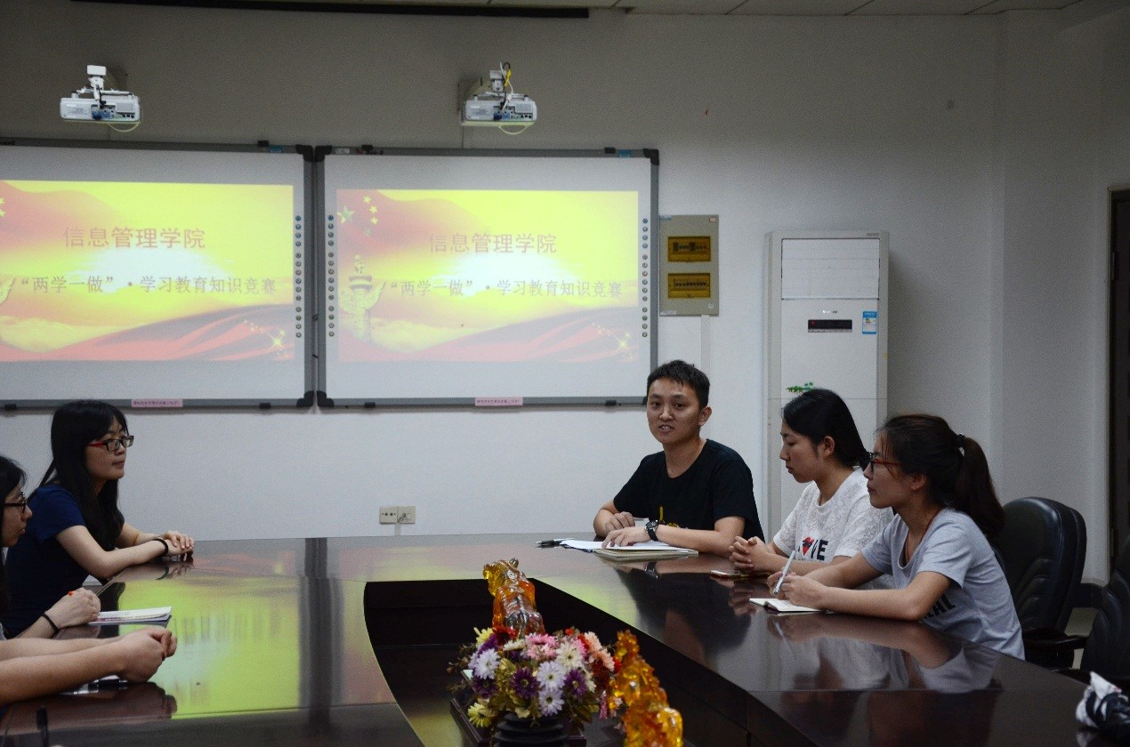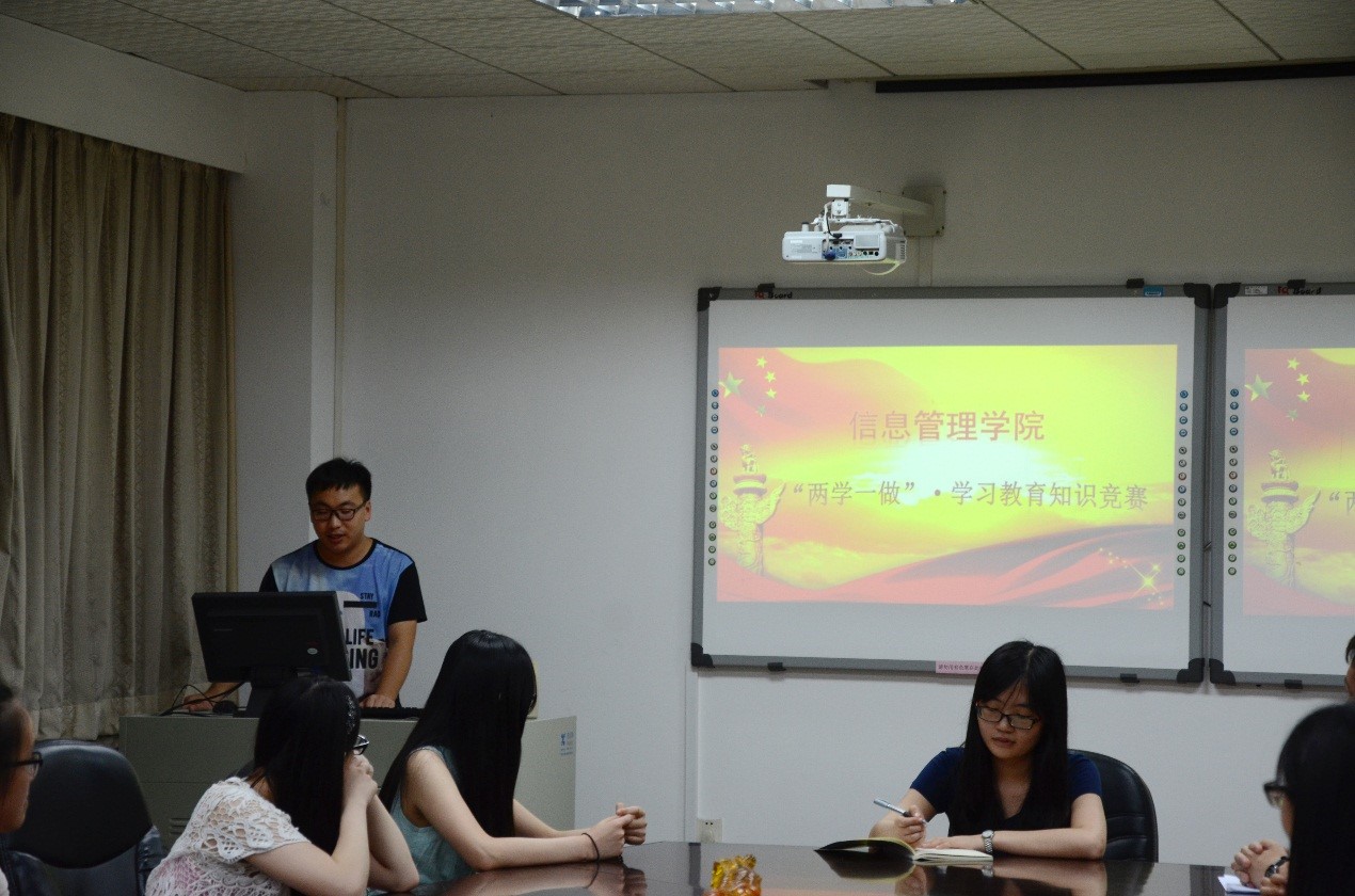 (通讯员:盛琦 摄影:童彤)6月24日晚上七点,信息管理学院研究生、本科生党员在九号楼918教室举行了“信息管理学院‘两学一做’知识竞赛”的比赛。全院6个党支部等2支代表队参加比赛。